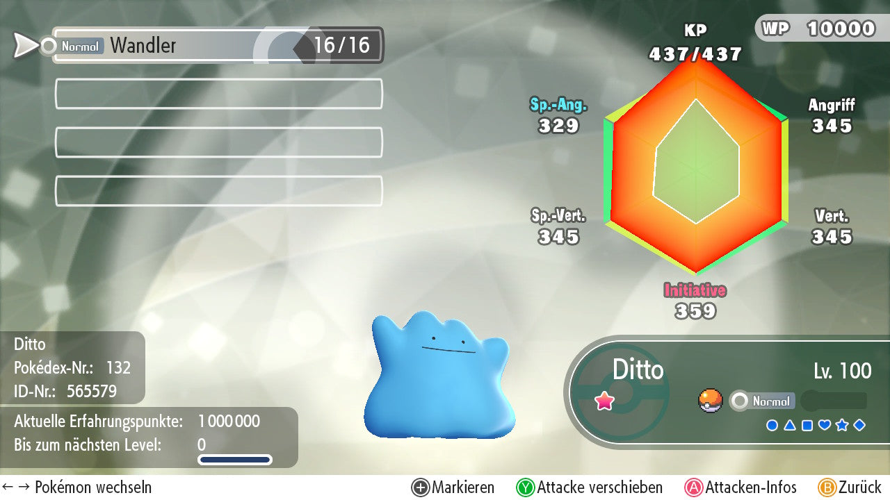 Das Pokemon ist mit beeindruckenden 6×31 IV-Werten ausgestattet. Das bedeutet, dass es auf allen sechs Werten (KP, Ang., Sp-Ang., Vert., Sp-Vert., Init.) die maximalen 31 IV/DV-Punkte besitzt. Dein Pokemon startet somit mit herausragender Stärke in digitale Kämpfe.