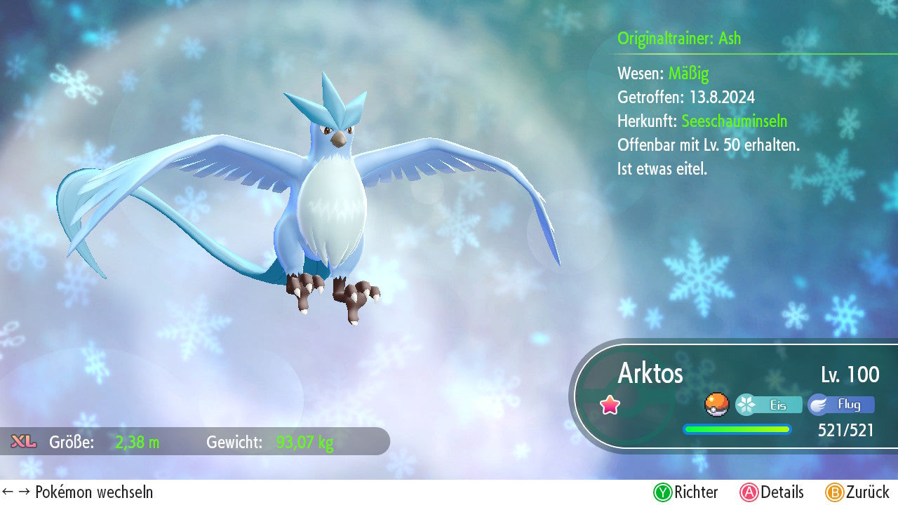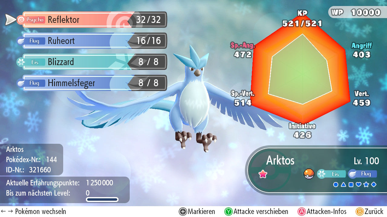 Das Pokemon ist mit beeindruckenden 6×31 IV-Werten ausgestattet. Das bedeutet, dass es auf allen sechs Werten (KP, Ang., Sp-Ang., Vert., Sp-Vert., Init.) die maximalen 31 IV/DV-Punkte besitzt. Dein Pokemon startet somit mit herausragender Stärke in digitale Kämpfe.