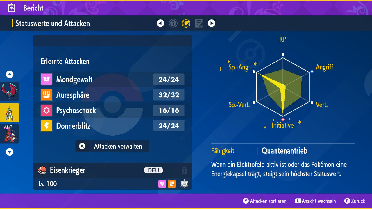 - Moveset/Attacken: Für den Spielerkampf optimiert.