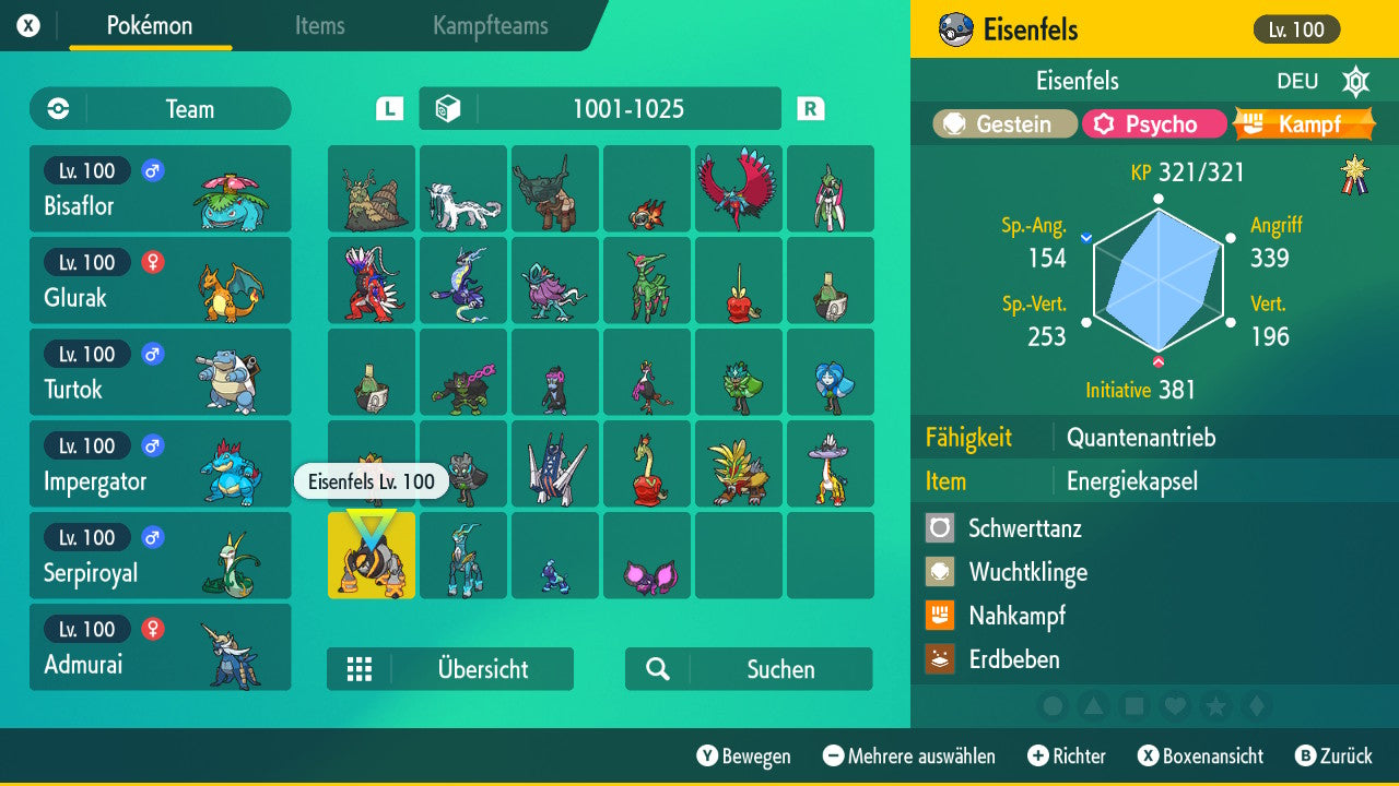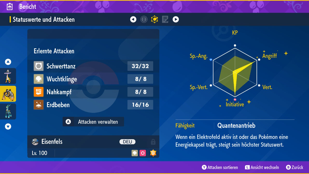 - Moveset/Attacken: Für den Spielerkampf optimiert.