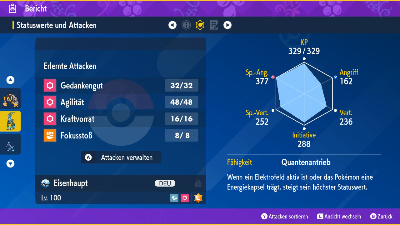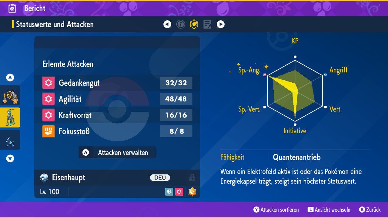- Moveset/Attacken: Für den Spielerkampf optimiert.