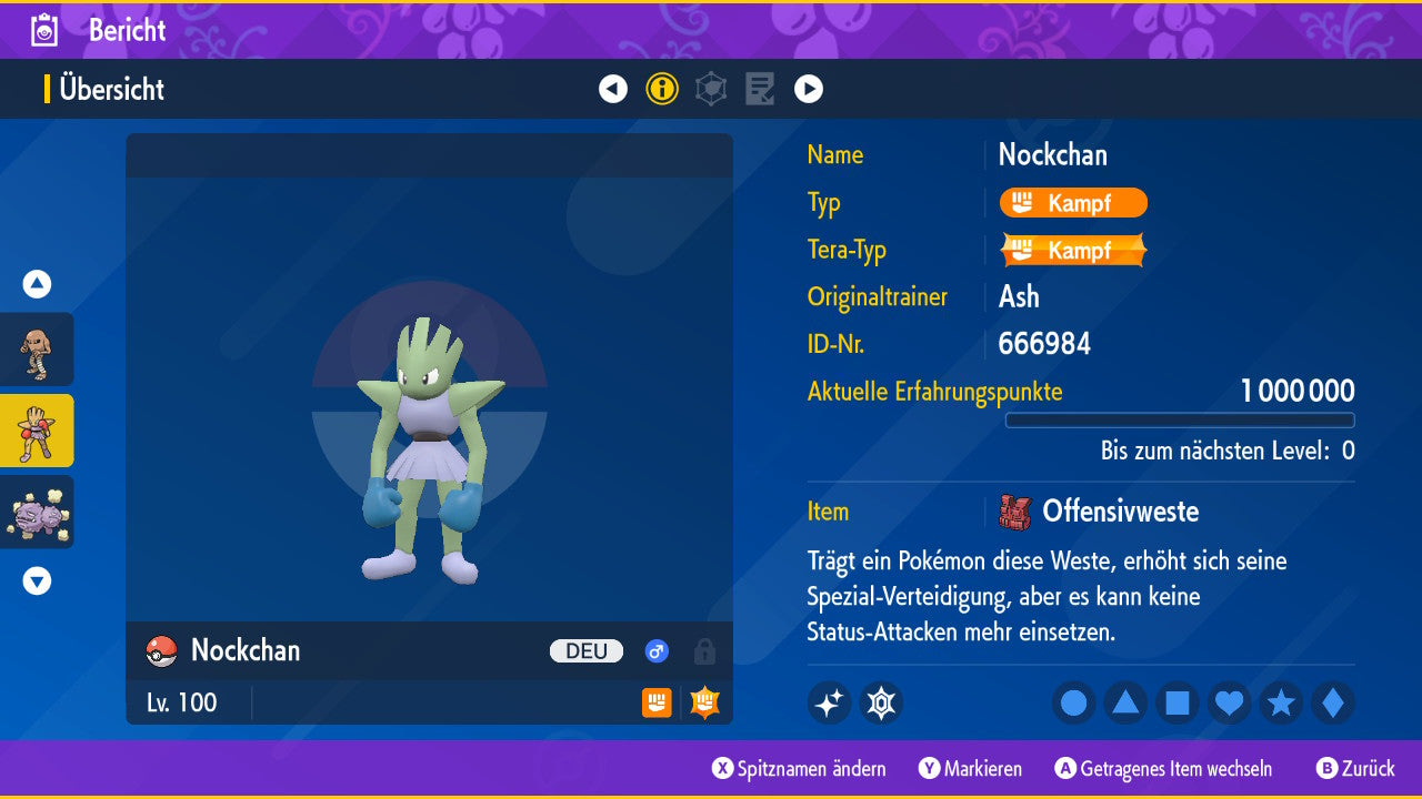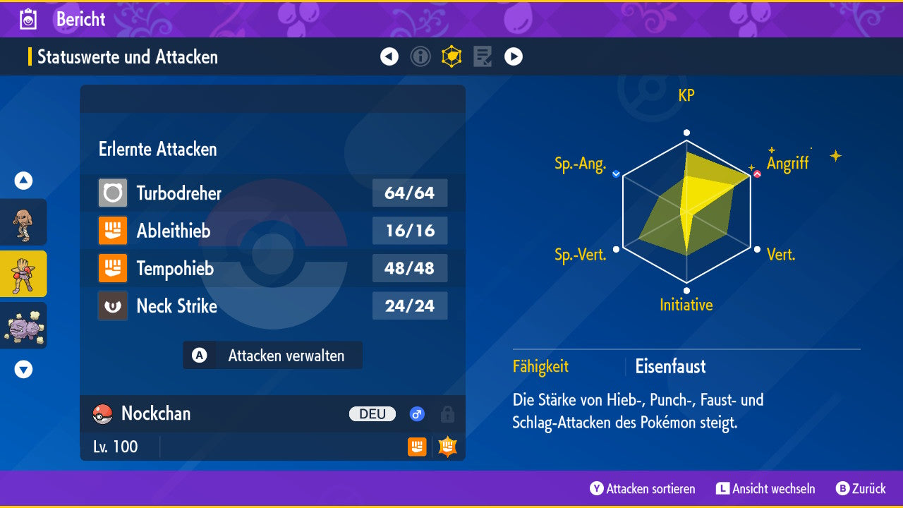 - Moveset/Attacken: Für den Spielerkampf optimiert.