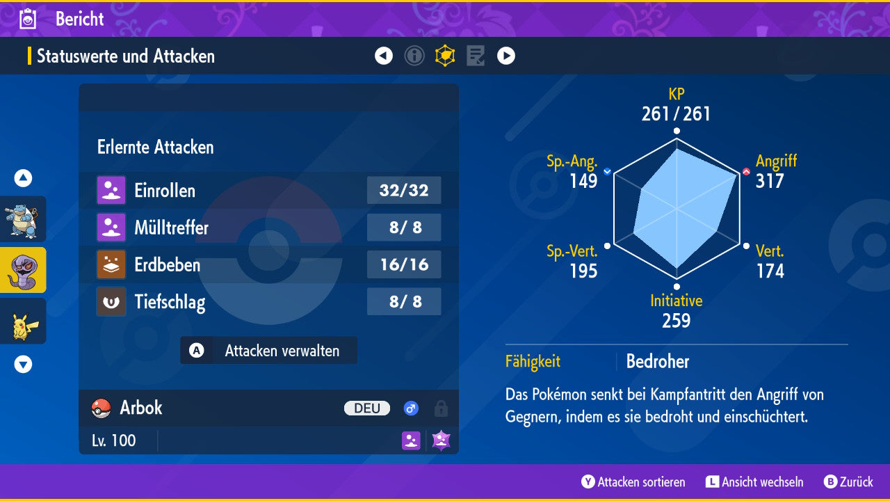 - Moveset/Attacken: Für den Spielerkampf optimiert.