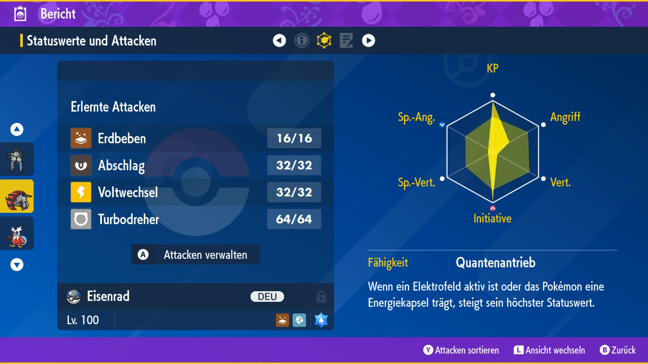 - Moveset/Attacken: Für den Spielerkampf optimiert.