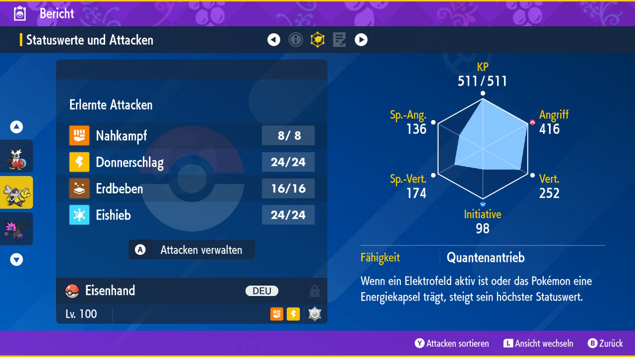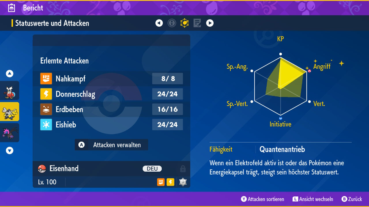 - Moveset/Attacken: Für den Spielerkampf optimiert.
