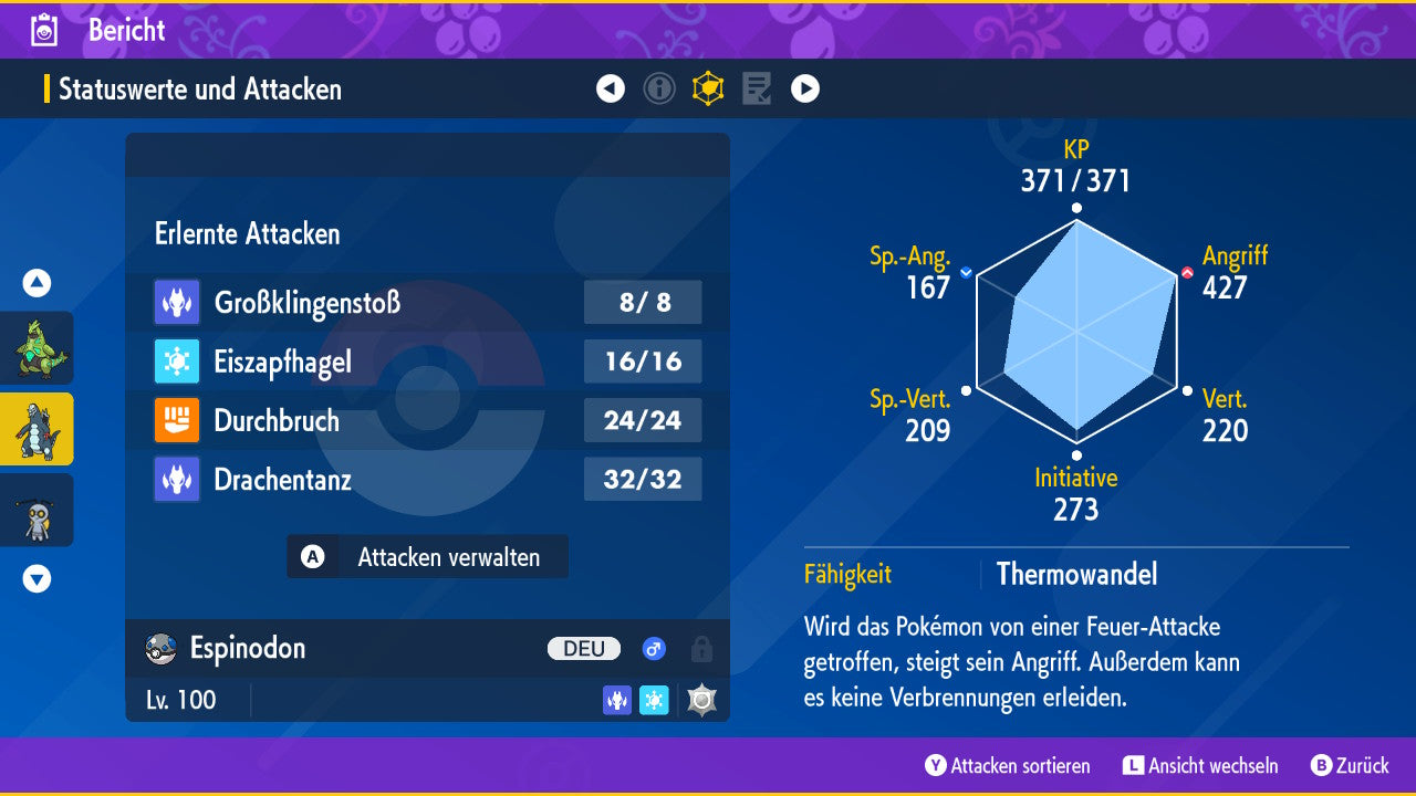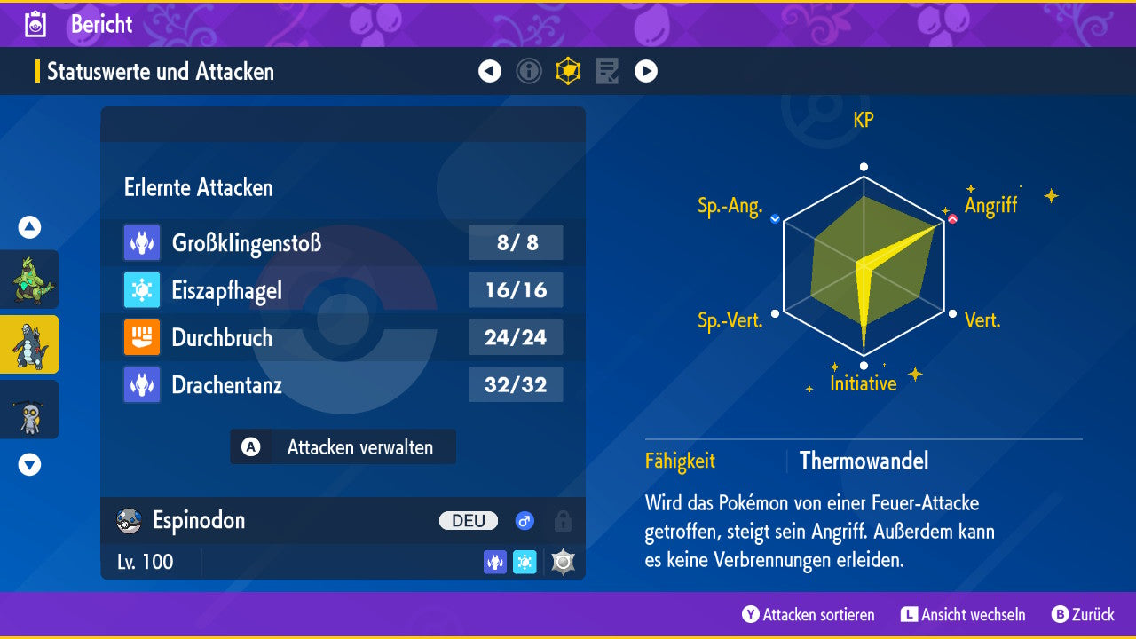- Moveset/Attacken: Für den Spielerkampf optimiert.