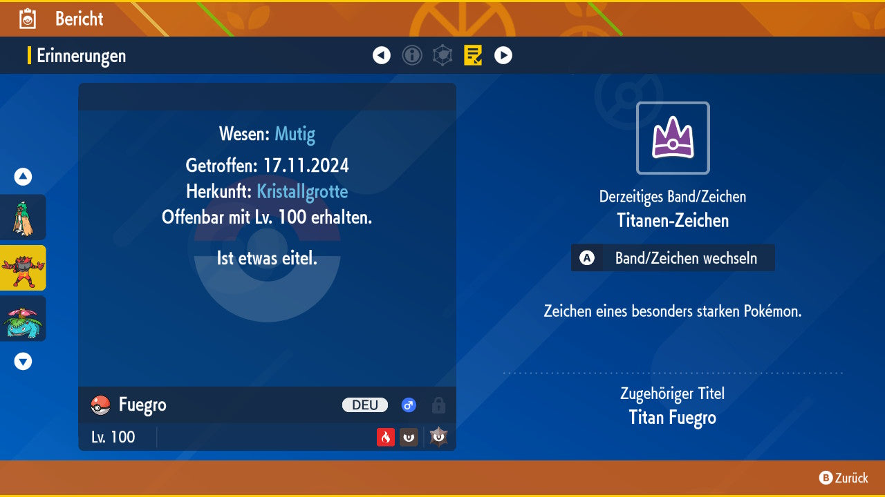 Exklusives Tera-Raid-Event-Pokemon mit exklusivem Titanen-Zeichen.