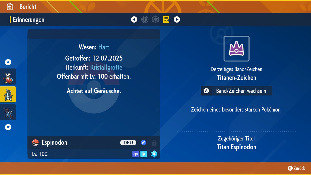 Exklusives Tera-Raid-Event-Pokemon mit exklusivem Titanen-Zeichen.
