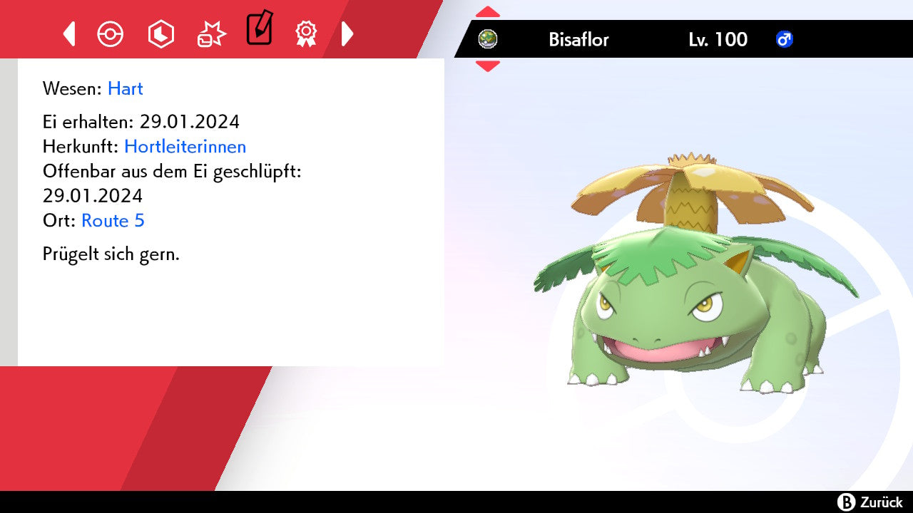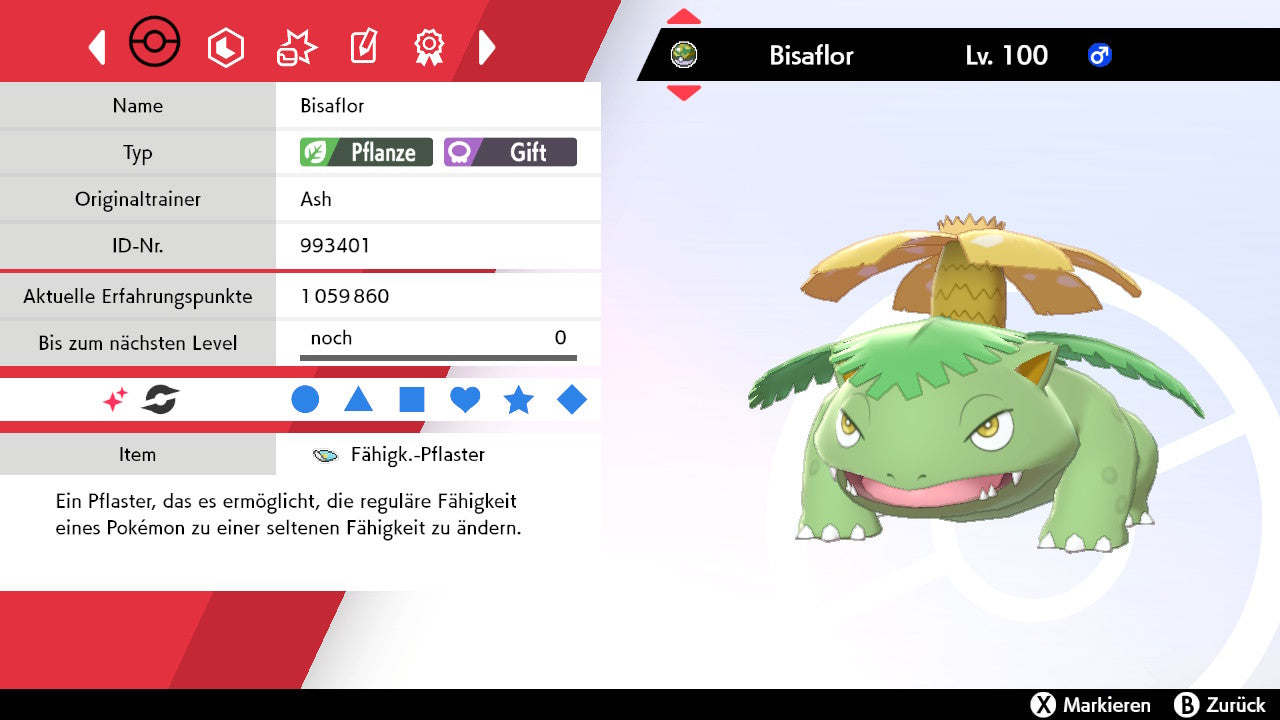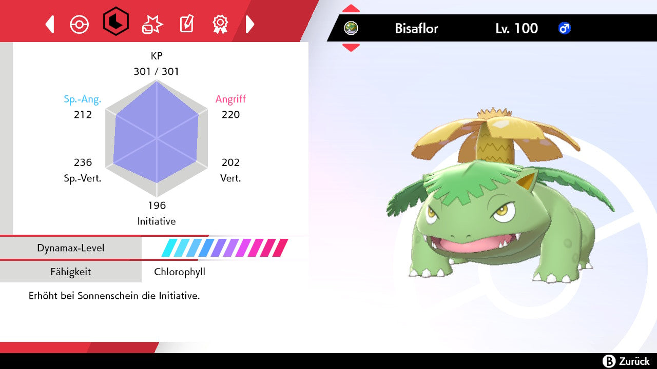 Das Pokemon ist mit beeindruckenden 6×31 IV-Werten ausgestattet. Das bedeutet, dass es auf allen sechs Werten (KP, Ang., Sp-Ang., Vert., Sp-Vert., Init.) die maximalen 31 IV/DV-Punkte besitzt. Dein Pokemon startet somit mit herausragender Stärke in digitale Kämpfe.