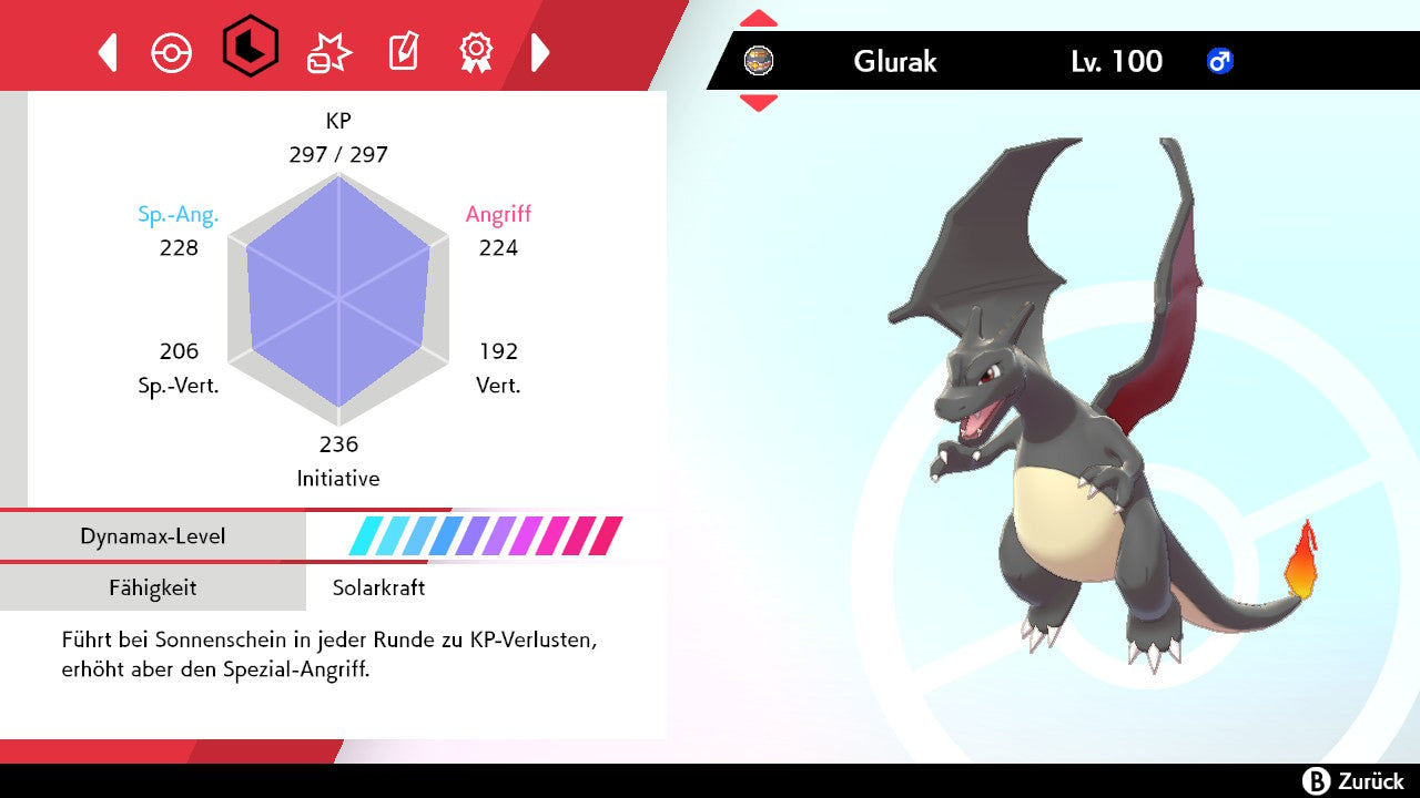 Das Pokemon ist mit beeindruckenden 6×31 IV-Werten ausgestattet. Das bedeutet, dass es auf allen sechs Werten (KP, Ang., Sp-Ang., Vert., Sp-Vert., Init.) die maximalen 31 IV/DV-Punkte besitzt. Dein Pokemon startet somit mit herausragender Stärke in digitale Kämpfe.