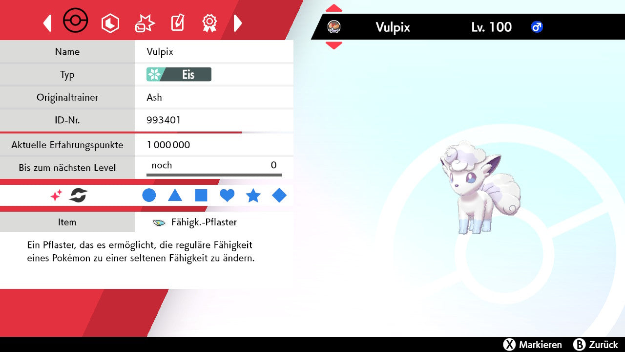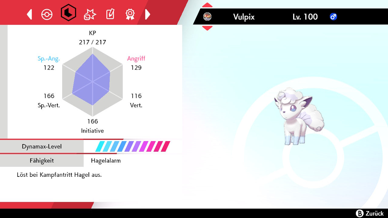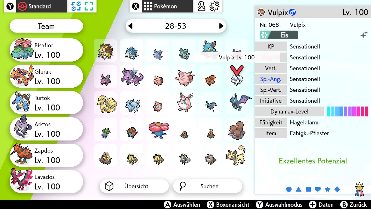 Das Pokemon ist mit beeindruckenden 6×31 IV-Werten ausgestattet. Das bedeutet, dass es auf allen sechs Werten (KP, Ang., Sp-Ang., Vert., Sp-Vert., Init.) die maximalen 31 IV/DV-Punkte besitzt. Dein Pokemon startet somit mit herausragender Stärke in digitale Kämpfe.