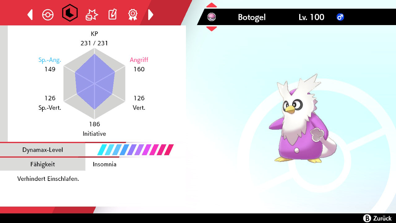 Das Pokemon ist mit beeindruckenden 6×31 IV-Werten ausgestattet. Das bedeutet, dass es auf allen sechs Werten (KP, Ang., Sp-Ang., Vert., Sp-Vert., Init.) die maximalen 31 IV/DV-Punkte besitzt. Dein Pokemon startet somit mit herausragender Stärke in digitale Kämpfe.