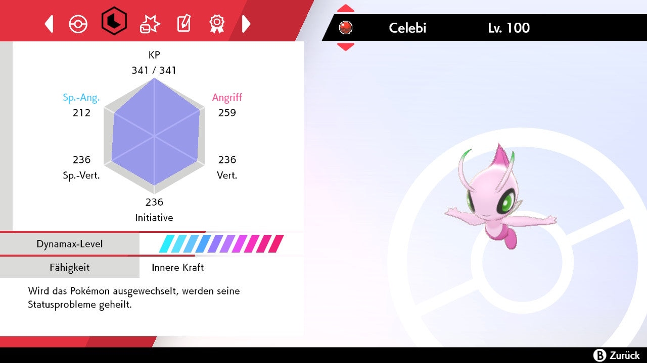 Das Pokemon ist mit beeindruckenden 6×31 IV-Werten ausgestattet. Das bedeutet, dass es auf allen sechs Werten (KP, Ang., Sp-Ang., Vert., Sp-Vert., Init.) die maximalen 31 IV/DV-Punkte besitzt. Dein Pokemon startet somit mit herausragender Stärke in digitale Kämpfe.