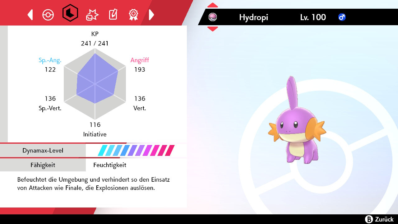 Das Pokemon ist mit beeindruckenden 6×31 IV-Werten ausgestattet. Das bedeutet, dass es auf allen sechs Werten (KP, Ang., Sp-Ang., Vert., Sp-Vert., Init.) die maximalen 31 IV/DV-Punkte besitzt. Dein Pokemon startet somit mit herausragender Stärke in digitale Kämpfe.