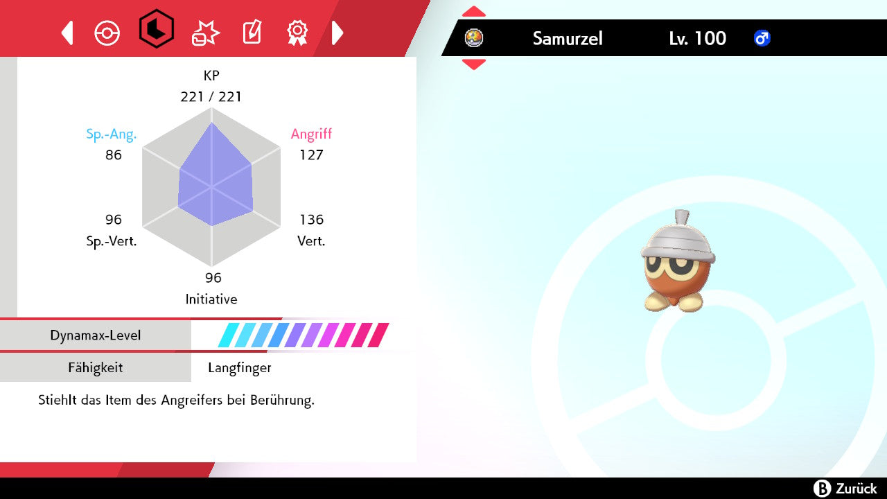 Das Pokemon ist mit beeindruckenden 6×31 IV-Werten ausgestattet. Das bedeutet, dass es auf allen sechs Werten (KP, Ang., Sp-Ang., Vert., Sp-Vert., Init.) die maximalen 31 IV/DV-Punkte besitzt. Dein Pokemon startet somit mit herausragender Stärke in digitale Kämpfe.
