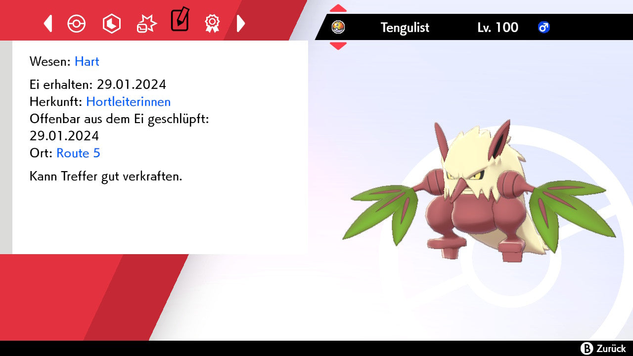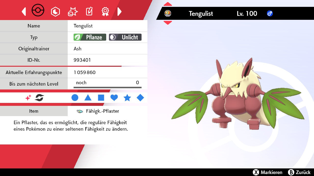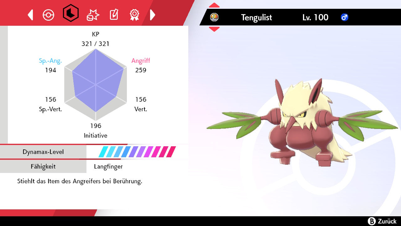 Das Pokemon ist mit beeindruckenden 6×31 IV-Werten ausgestattet. Das bedeutet, dass es auf allen sechs Werten (KP, Ang., Sp-Ang., Vert., Sp-Vert., Init.) die maximalen 31 IV/DV-Punkte besitzt. Dein Pokemon startet somit mit herausragender Stärke in digitale Kämpfe.