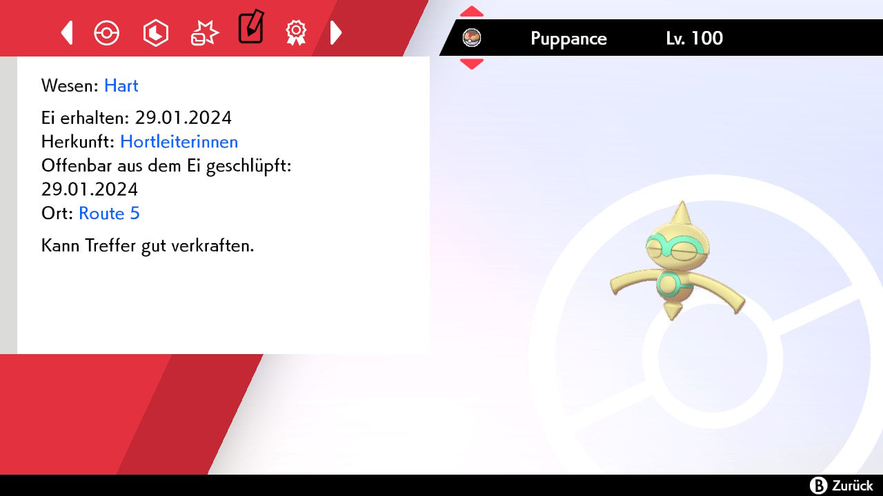 Das Pokemon ist mit beeindruckenden 6×31 IV-Werten ausgestattet. Das bedeutet, dass es auf allen sechs Werten (KP, Ang., Sp-Ang., Vert., Sp-Vert., Init.) die maximalen 31 IV/DV-Punkte besitzt. Dein Pokemon startet somit mit herausragender Stärke in digitale Kämpfe.