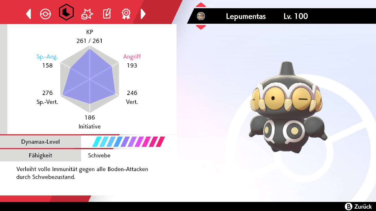 Das Pokemon ist mit beeindruckenden 6×31 IV-Werten ausgestattet. Das bedeutet, dass es auf allen sechs Werten (KP, Ang., Sp-Ang., Vert., Sp-Vert., Init.) die maximalen 31 IV/DV-Punkte besitzt. Dein Pokemon startet somit mit herausragender Stärke in digitale Kämpfe.