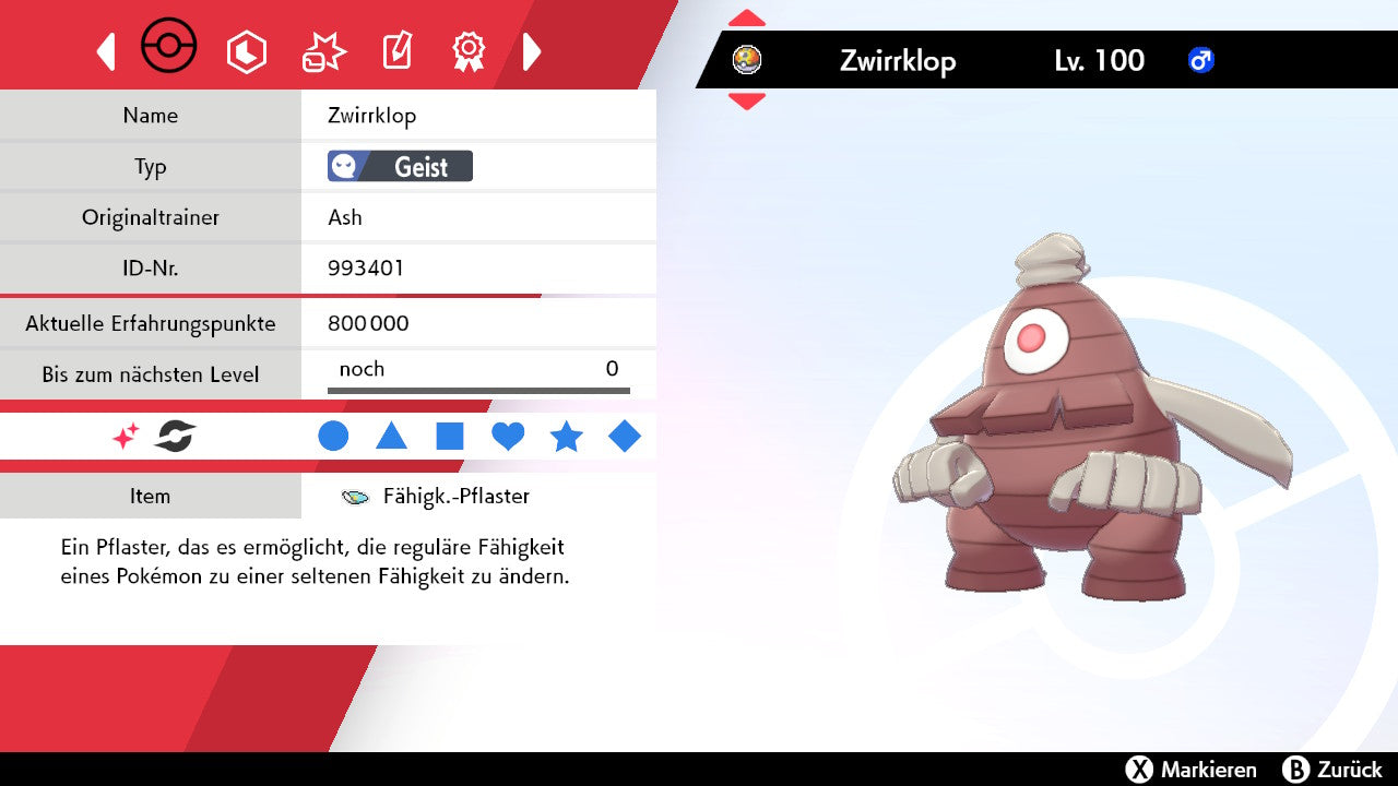 Das Pokemon ist mit beeindruckenden 6×31 IV-Werten ausgestattet. Das bedeutet, dass es auf allen sechs Werten (KP, Ang., Sp-Ang., Vert., Sp-Vert., Init.) die maximalen 31 IV/DV-Punkte besitzt. Dein Pokemon startet somit mit herausragender Stärke in digitale Kämpfe.