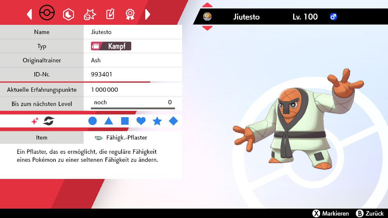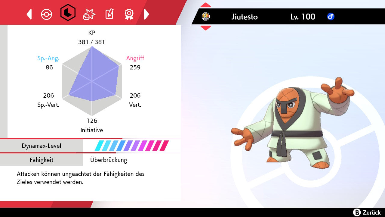 Das Pokemon ist mit beeindruckenden 6×31 IV-Werten ausgestattet. Das bedeutet, dass es auf allen sechs Werten (KP, Ang., Sp-Ang., Vert., Sp-Vert., Init.) die maximalen 31 IV/DV-Punkte besitzt. Dein Pokemon startet somit mit herausragender Stärke in digitale Kämpfe.