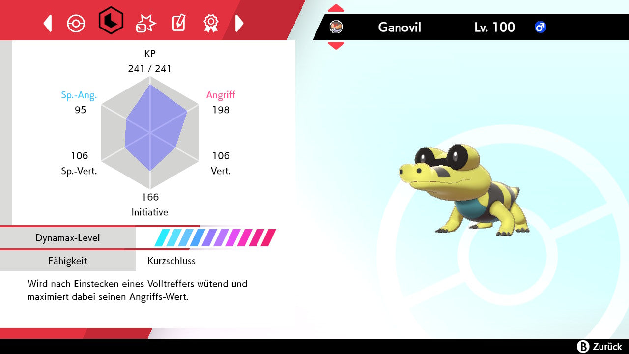 Das Pokemon ist mit beeindruckenden 6×31 IV-Werten ausgestattet. Das bedeutet, dass es auf allen sechs Werten (KP, Ang., Sp-Ang., Vert., Sp-Vert., Init.) die maximalen 31 IV/DV-Punkte besitzt. Dein Pokemon startet somit mit herausragender Stärke in digitale Kämpfe.
