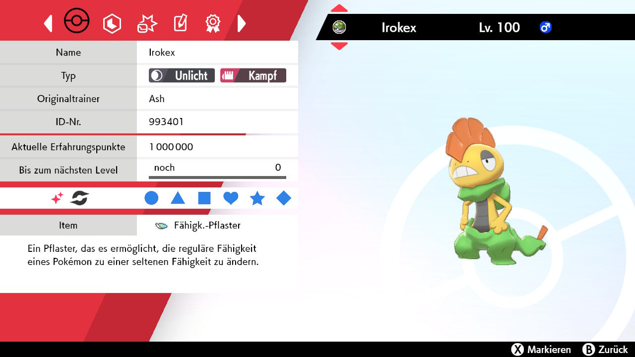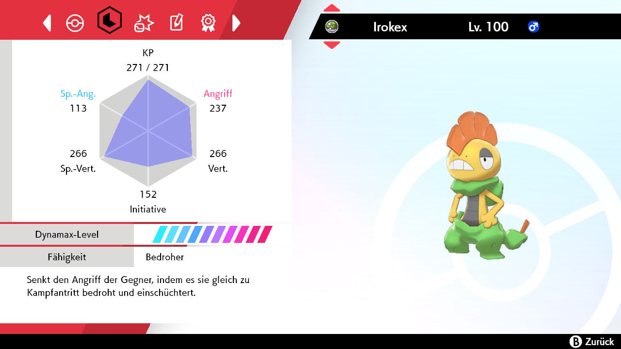 Das Pokemon ist mit beeindruckenden 6×31 IV-Werten ausgestattet. Das bedeutet, dass es auf allen sechs Werten (KP, Ang., Sp-Ang., Vert., Sp-Vert., Init.) die maximalen 31 IV/DV-Punkte besitzt. Dein Pokemon startet somit mit herausragender Stärke in digitale Kämpfe.