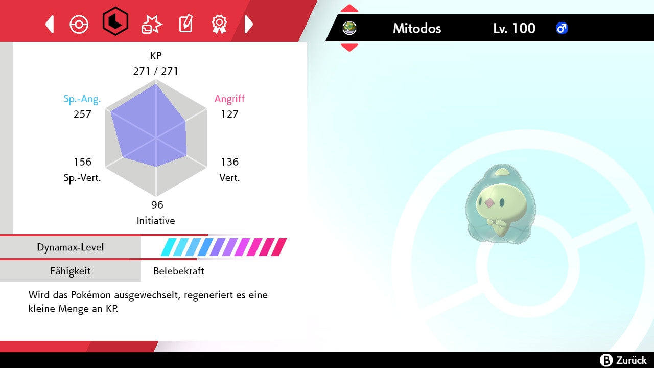 Das Pokemon ist mit beeindruckenden 6×31 IV-Werten ausgestattet. Das bedeutet, dass es auf allen sechs Werten (KP, Ang., Sp-Ang., Vert., Sp-Vert., Init.) die maximalen 31 IV/DV-Punkte besitzt. Dein Pokemon startet somit mit herausragender Stärke in digitale Kämpfe.