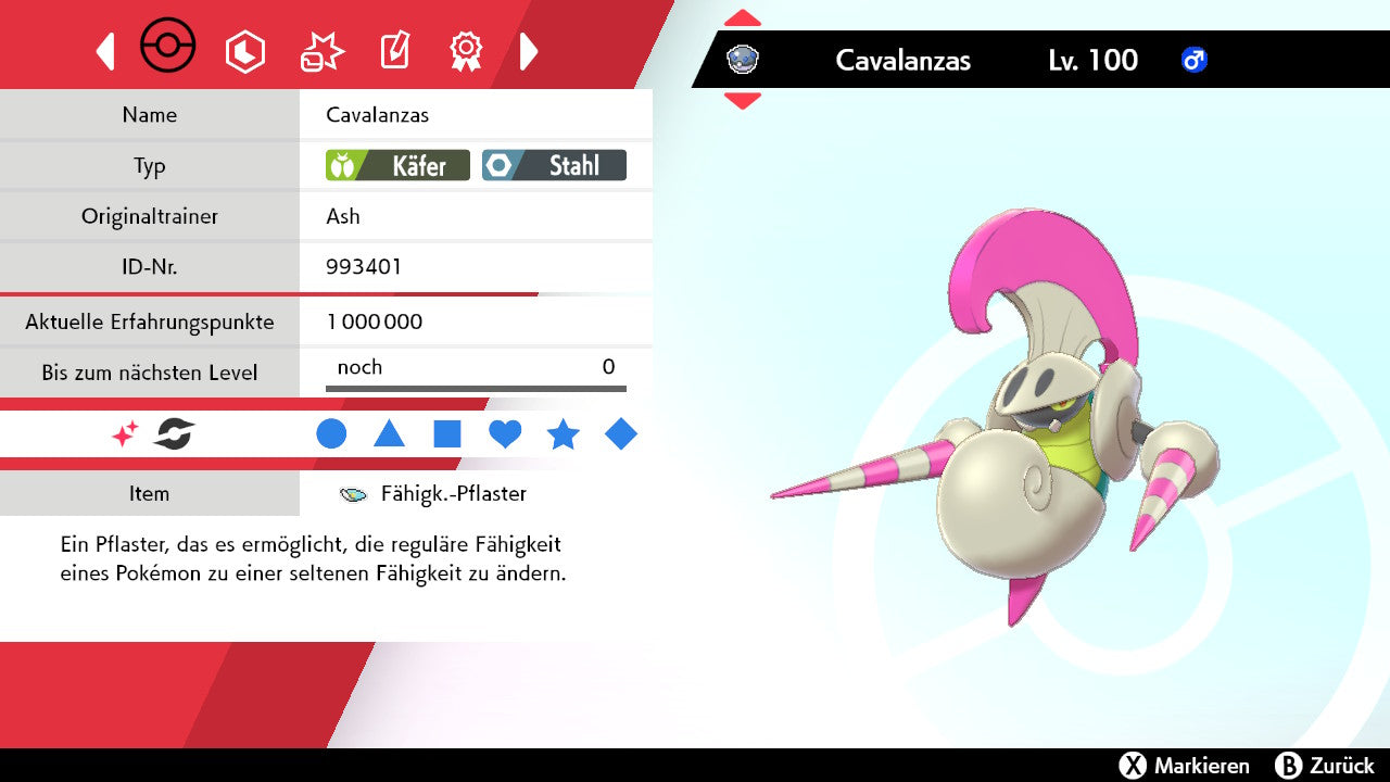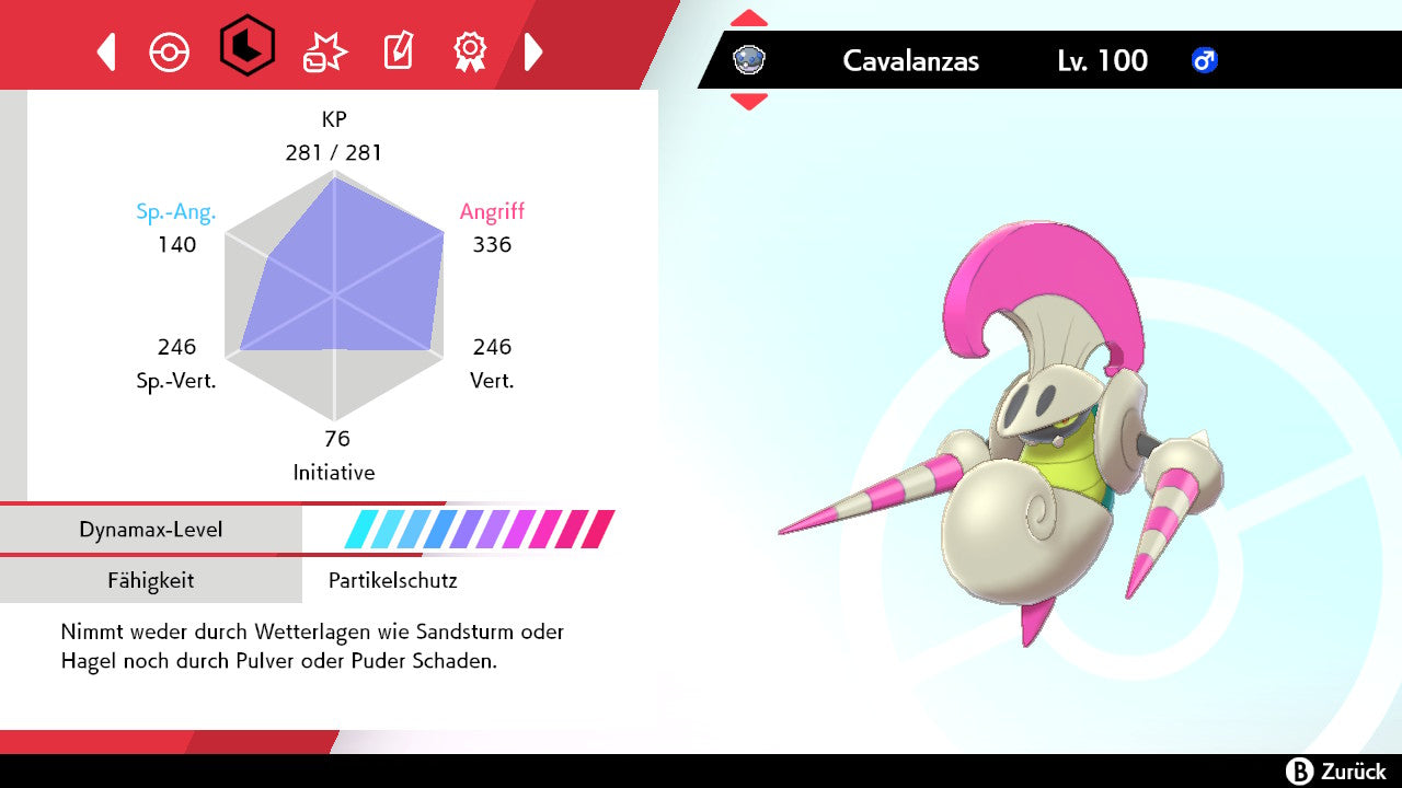 Das Pokemon ist mit beeindruckenden 6×31 IV-Werten ausgestattet. Das bedeutet, dass es auf allen sechs Werten (KP, Ang., Sp-Ang., Vert., Sp-Vert., Init.) die maximalen 31 IV/DV-Punkte besitzt. Dein Pokemon startet somit mit herausragender Stärke in digitale Kämpfe.