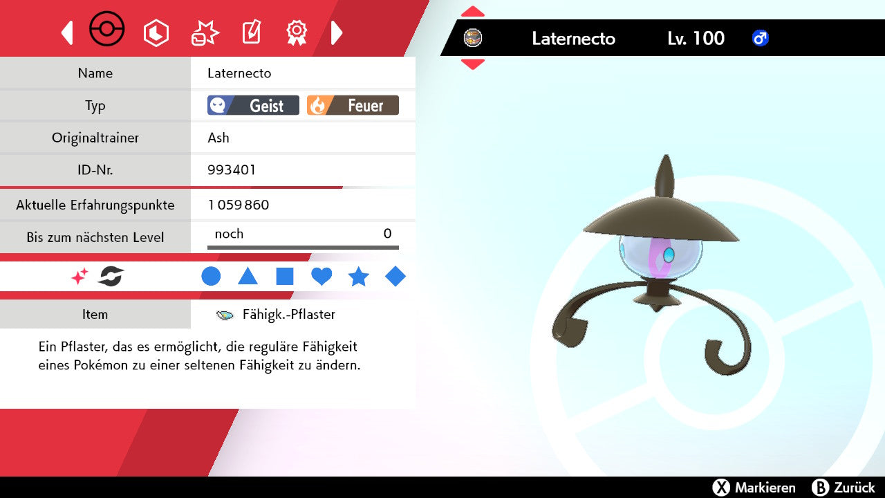 Das Pokemon ist mit beeindruckenden 6×31 IV-Werten ausgestattet. Das bedeutet, dass es auf allen sechs Werten (KP, Ang., Sp-Ang., Vert., Sp-Vert., Init.) die maximalen 31 IV/DV-Punkte besitzt. Dein Pokemon startet somit mit herausragender Stärke in digitale Kämpfe.