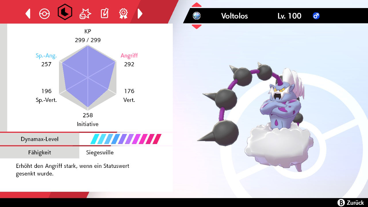 Das Pokemon ist mit beeindruckenden 6×31 IV-Werten ausgestattet. Das bedeutet, dass es auf allen sechs Werten (KP, Ang., Sp-Ang., Vert., Sp-Vert., Init.) die maximalen 31 IV/DV-Punkte besitzt. Dein Pokemon startet somit mit herausragender Stärke in digitale Kämpfe.