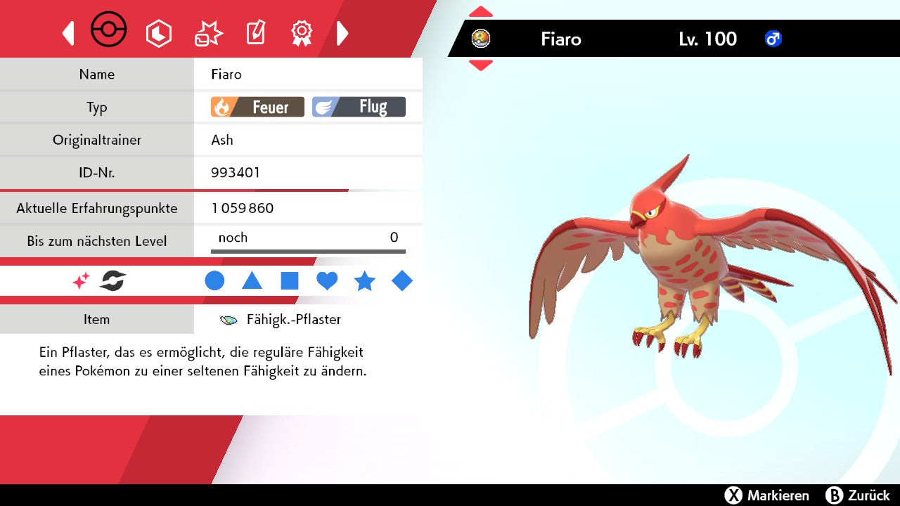 Das Pokemon ist mit beeindruckenden 6×31 IV-Werten ausgestattet. Das bedeutet, dass es auf allen sechs Werten (KP, Ang., Sp-Ang., Vert., Sp-Vert., Init.) die maximalen 31 IV/DV-Punkte besitzt. Dein Pokemon startet somit mit herausragender Stärke in digitale Kämpfe.