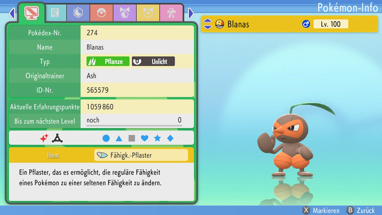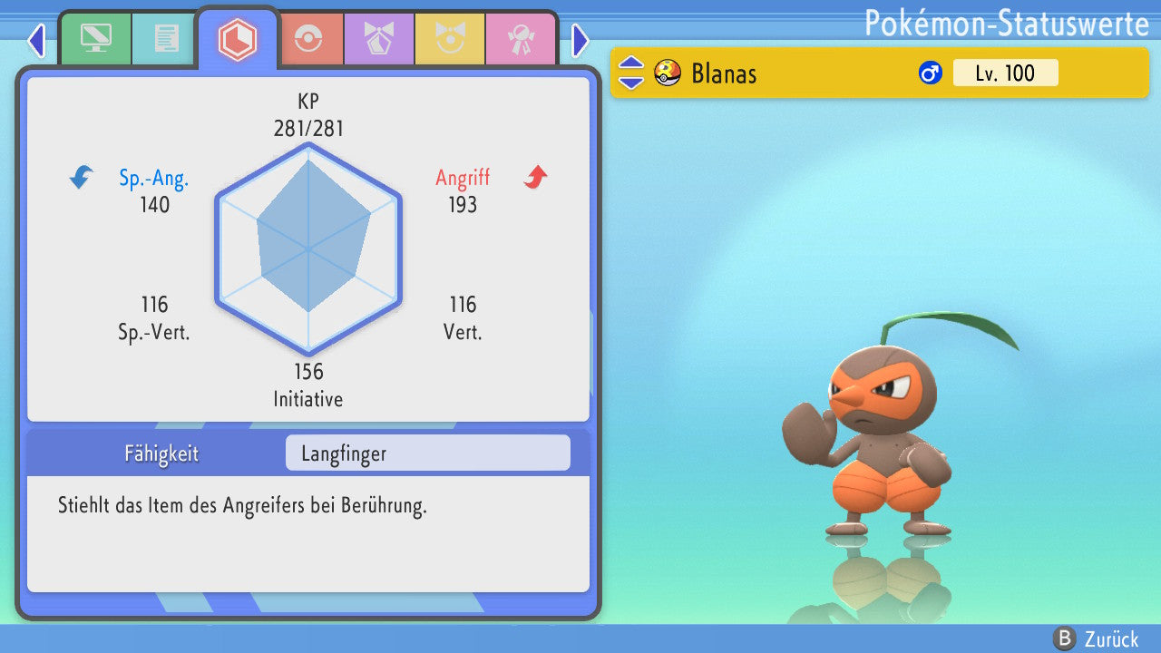 Das Pokemon ist mit beeindruckenden 6×31 IV-Werten ausgestattet. Das bedeutet, dass es auf allen sechs Werten (KP, Ang., Sp-Ang., Vert., Sp-Vert., Init.) die maximalen 31 IV/DV-Punkte besitzt. Dein Pokemon startet somit mit herausragender Stärke in digitale Kämpfe.