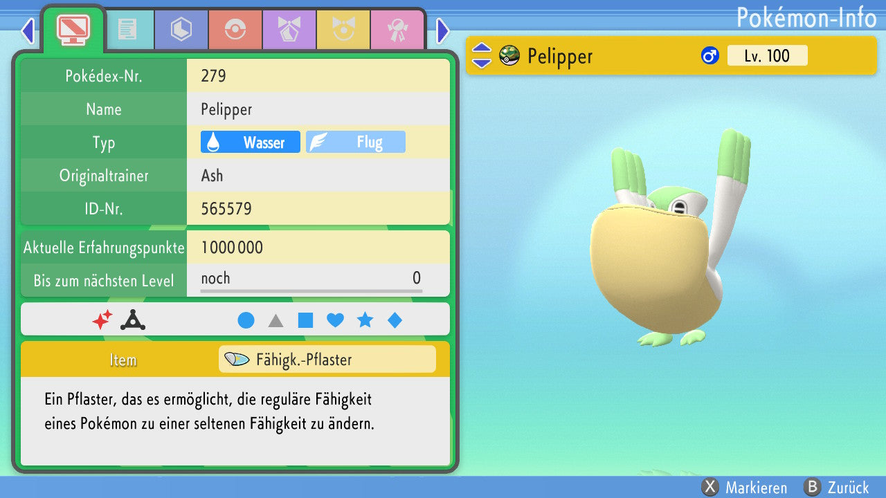 Das Pokemon ist mit beeindruckenden 6×31 IV-Werten ausgestattet. Das bedeutet, dass es auf allen sechs Werten (KP, Ang., Sp-Ang., Vert., Sp-Vert., Init.) die maximalen 31 IV/DV-Punkte besitzt. Dein Pokemon startet somit mit herausragender Stärke in digitale Kämpfe.