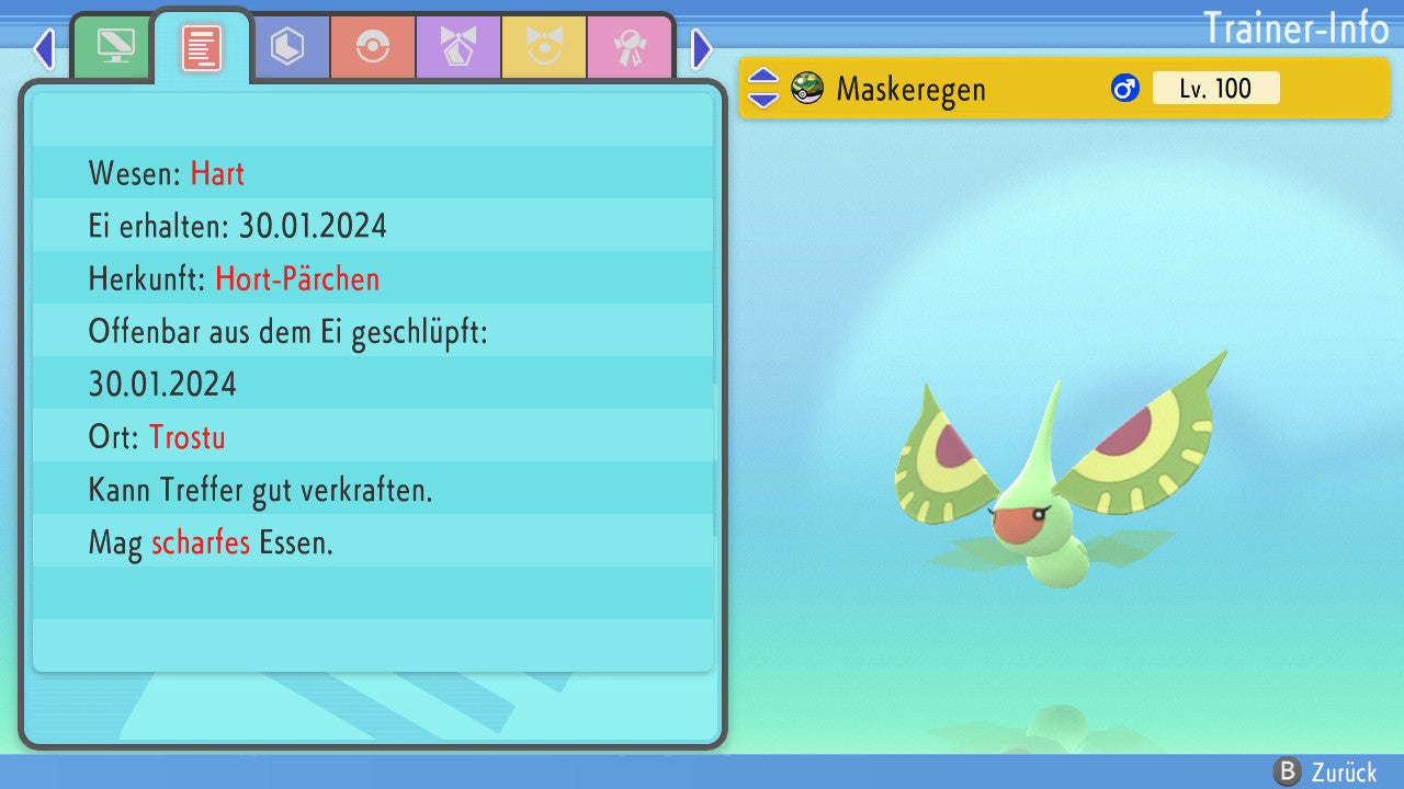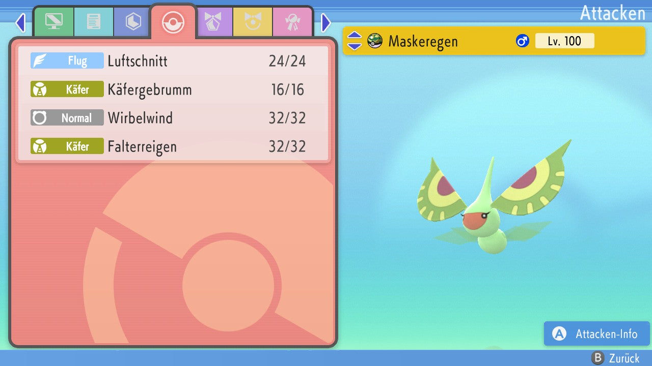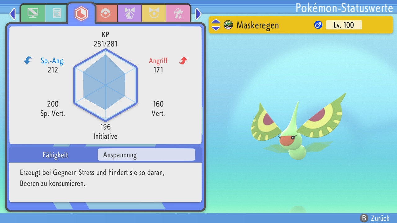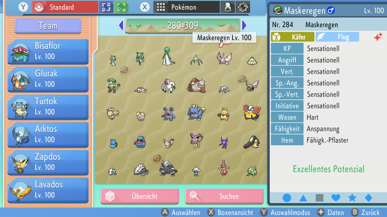 Das Pokemon ist mit beeindruckenden 6×31 IV-Werten ausgestattet. Das bedeutet, dass es auf allen sechs Werten (KP, Ang., Sp-Ang., Vert., Sp-Vert., Init.) die maximalen 31 IV/DV-Punkte besitzt. Dein Pokemon startet somit mit herausragender Stärke in digitale Kämpfe.
