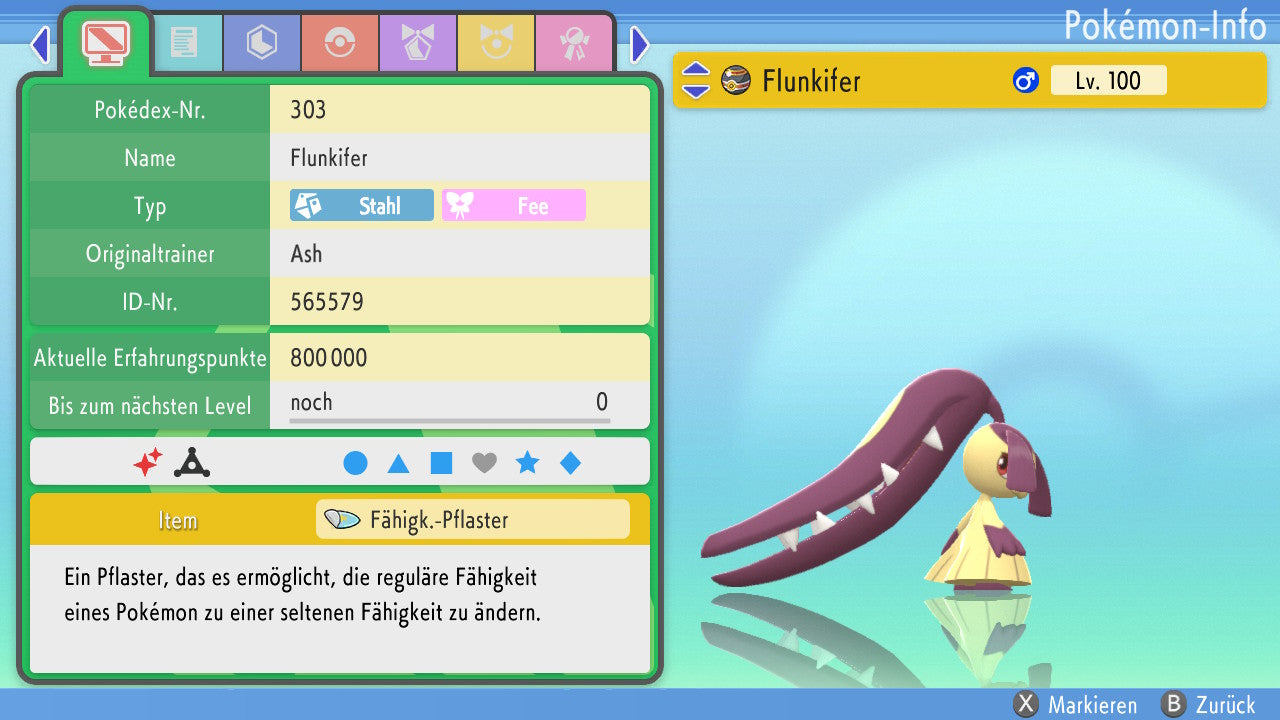 Das Pokemon ist mit beeindruckenden 6×31 IV-Werten ausgestattet. Das bedeutet, dass es auf allen sechs Werten (KP, Ang., Sp-Ang., Vert., Sp-Vert., Init.) die maximalen 31 IV/DV-Punkte besitzt. Dein Pokemon startet somit mit herausragender Stärke in digitale Kämpfe.