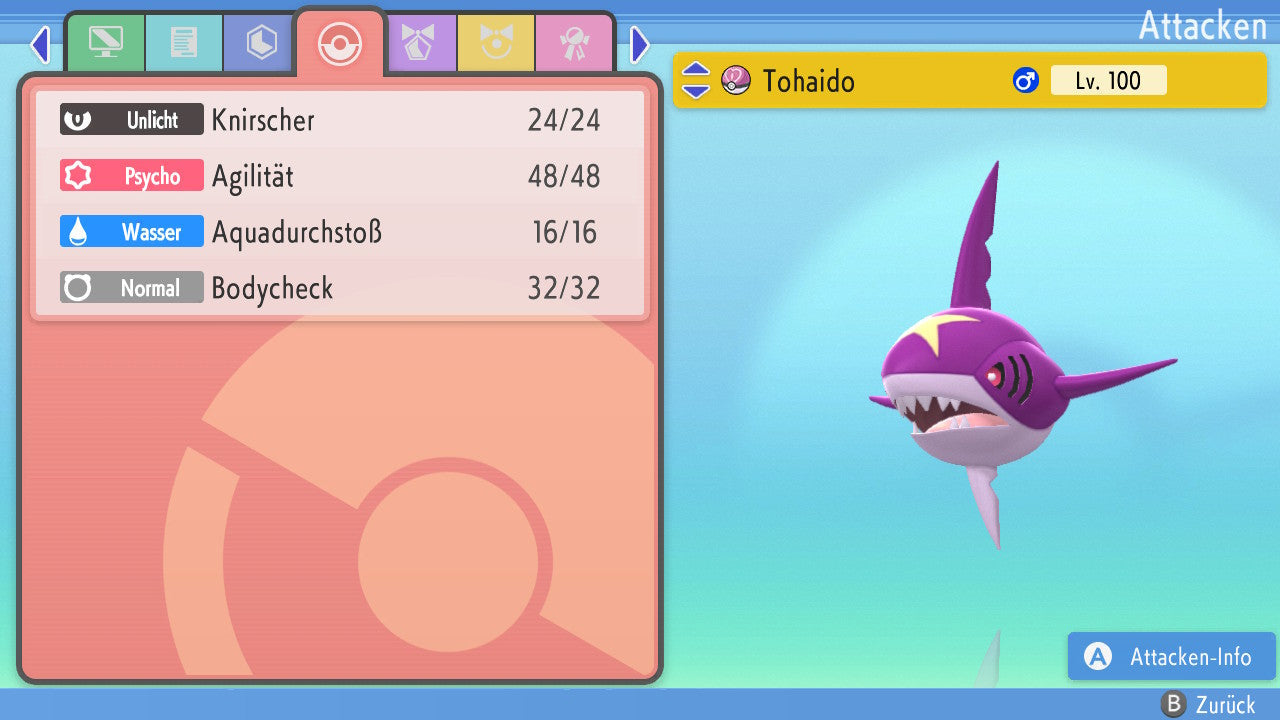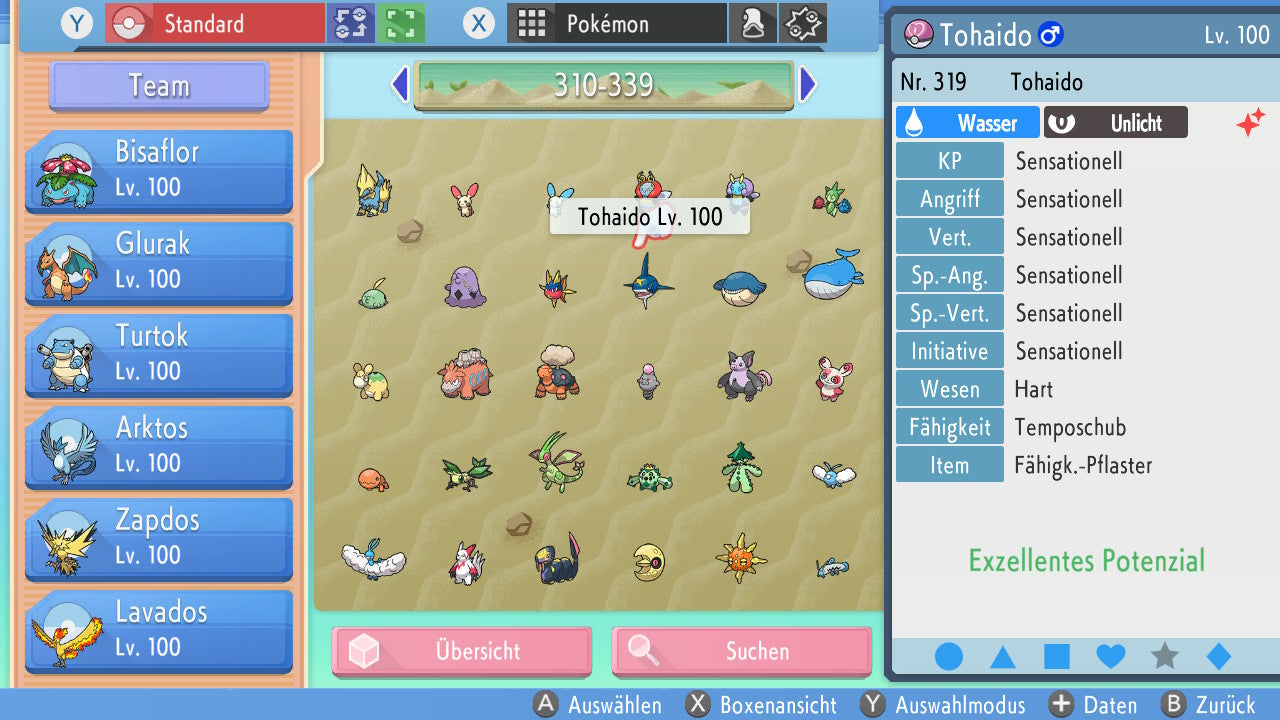Das Pokemon ist mit beeindruckenden 6×31 IV-Werten ausgestattet. Das bedeutet, dass es auf allen sechs Werten (KP, Ang., Sp-Ang., Vert., Sp-Vert., Init.) die maximalen 31 IV/DV-Punkte besitzt. Dein Pokemon startet somit mit herausragender Stärke in digitale Kämpfe.