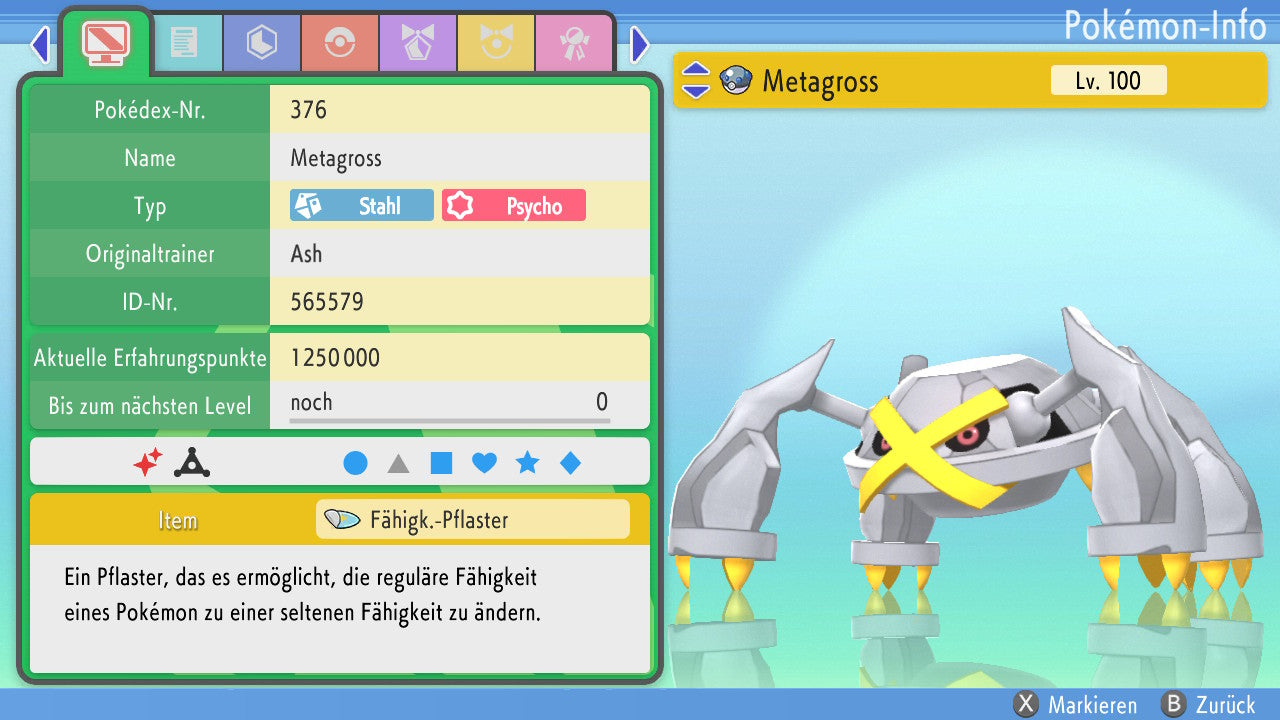 Das Pokemon ist mit beeindruckenden 6×31 IV-Werten ausgestattet. Das bedeutet, dass es auf allen sechs Werten (KP, Ang., Sp-Ang., Vert., Sp-Vert., Init.) die maximalen 31 IV/DV-Punkte besitzt. Dein Pokemon startet somit mit herausragender Stärke in digitale Kämpfe.