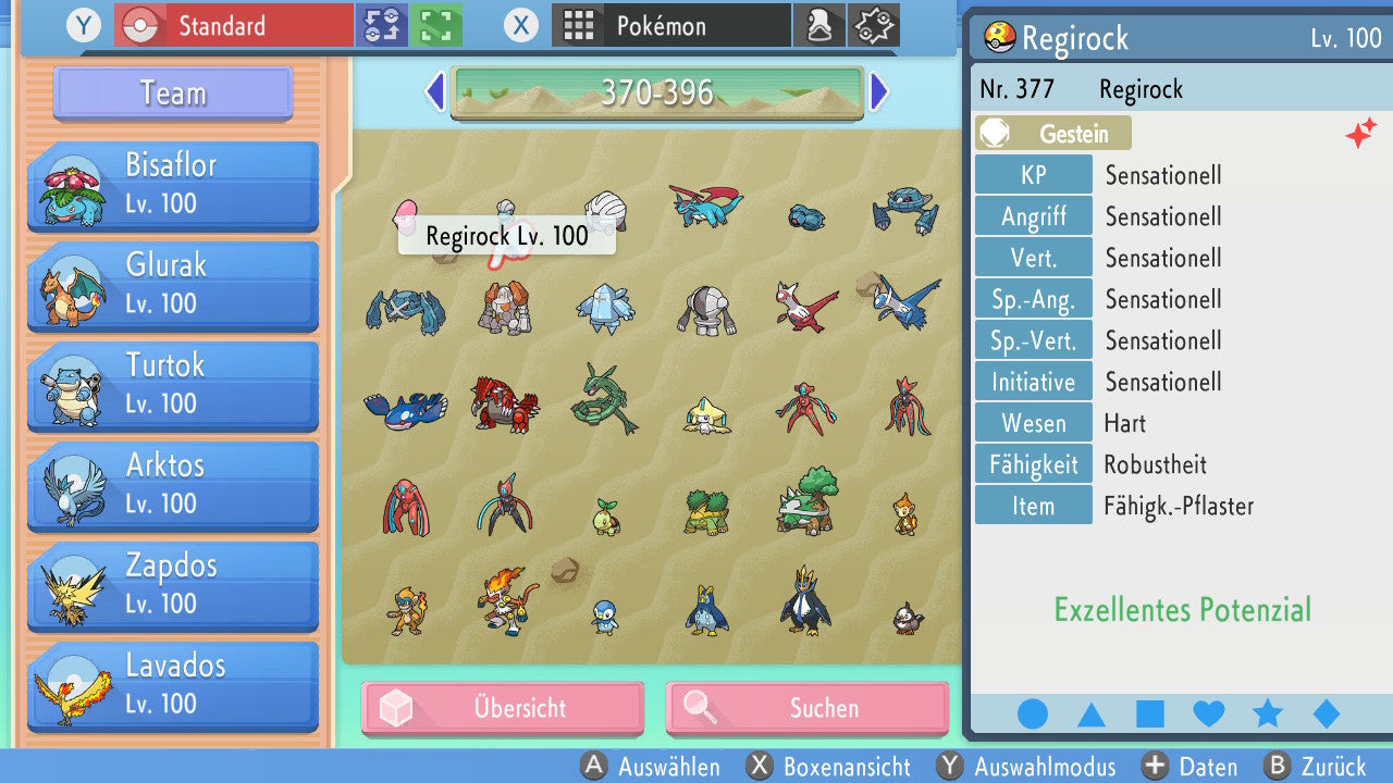 Das Pokemon ist mit beeindruckenden 6×31 IV-Werten ausgestattet. Das bedeutet, dass es auf allen sechs Werten (KP, Ang., Sp-Ang., Vert., Sp-Vert., Init.) die maximalen 31 IV/DV-Punkte besitzt. Dein Pokemon startet somit mit herausragender Stärke in digitale Kämpfe.