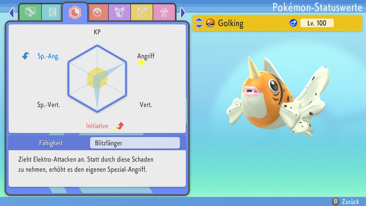 Das Pokemon ist mit beeindruckenden 6×31 IV-Werten ausgestattet. Das bedeutet, dass es auf allen sechs Werten (KP, Ang., Sp-Ang., Vert., Sp-Vert., Init.) die maximalen 31 IV/DV-Punkte besitzt. Dein Pokemon startet somit mit herausragender Stärke in digitale Kämpfe.