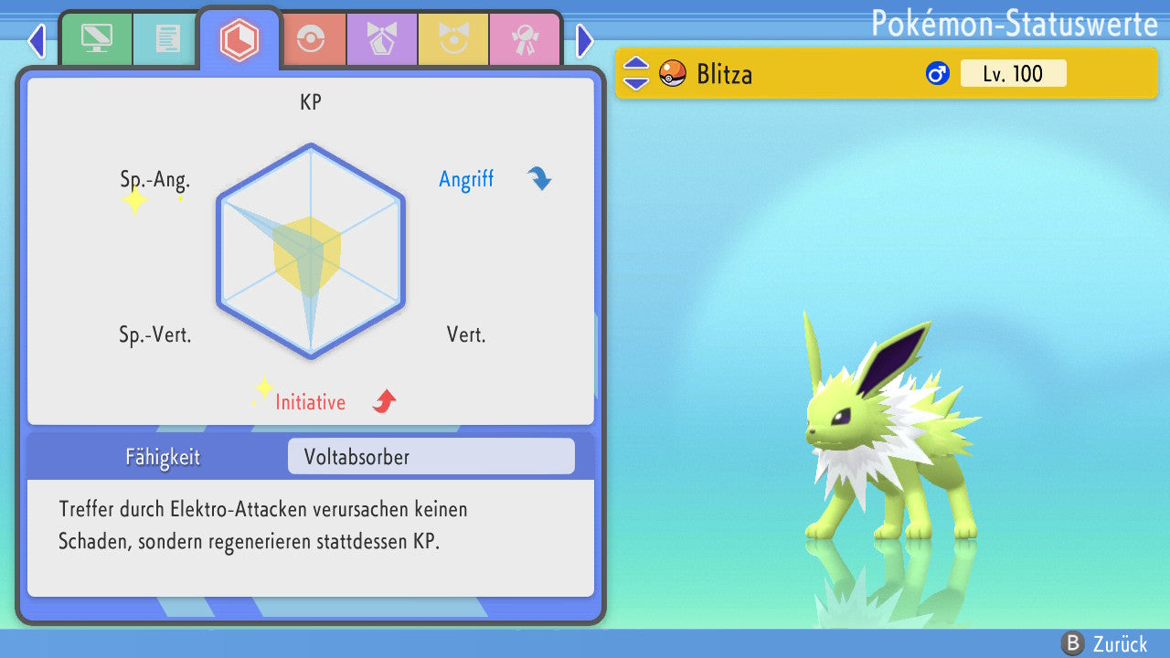 Das Pokemon ist mit beeindruckenden 6×31 IV-Werten ausgestattet. Das bedeutet, dass es auf allen sechs Werten (KP, Ang., Sp-Ang., Vert., Sp-Vert., Init.) die maximalen 31 IV/DV-Punkte besitzt. Dein Pokemon startet somit mit herausragender Stärke in digitale Kämpfe.