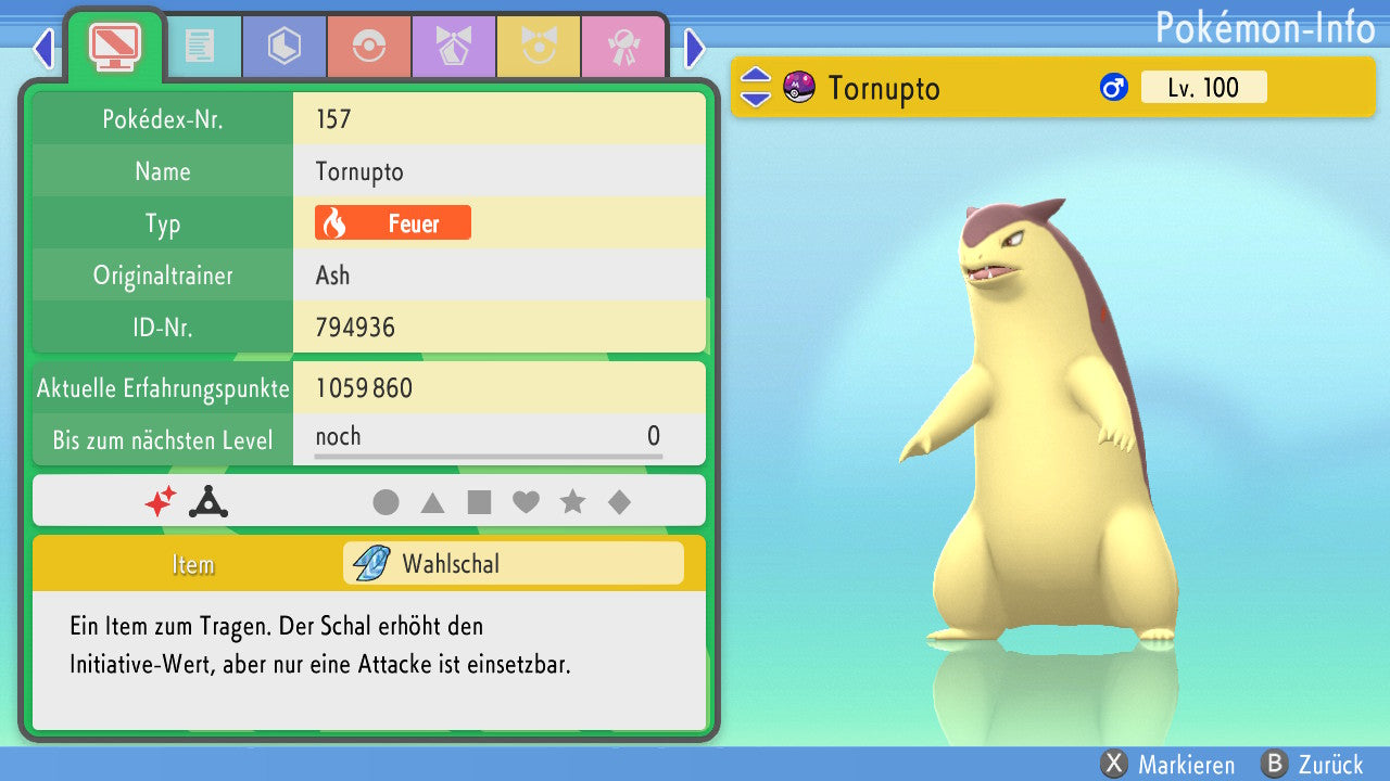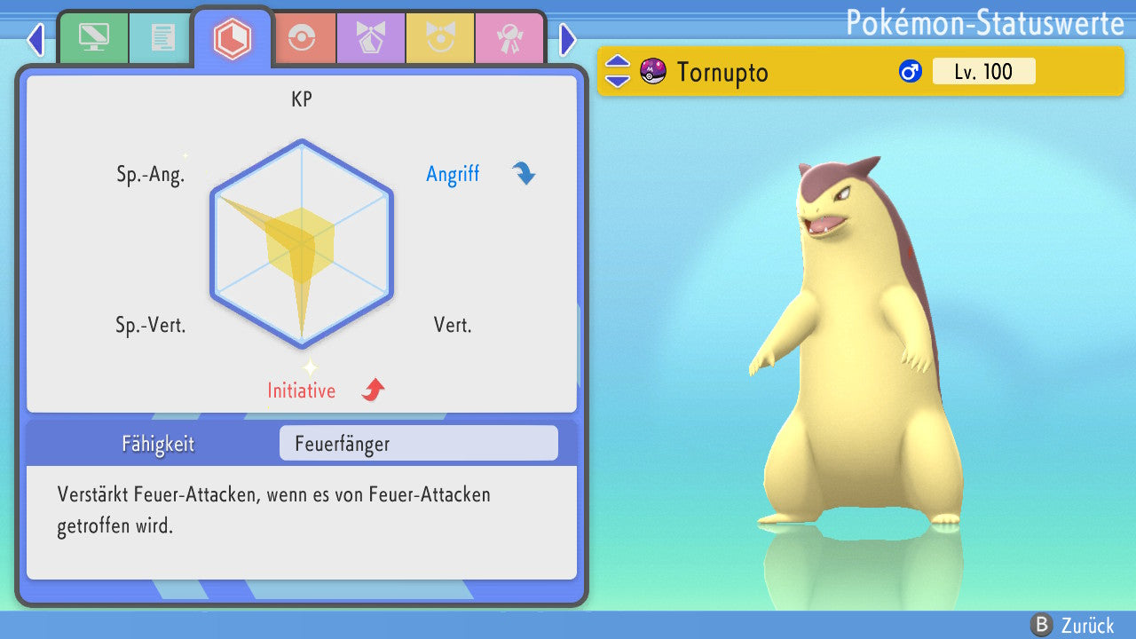 Das Pokemon ist mit beeindruckenden 6×31 IV-Werten ausgestattet. Das bedeutet, dass es auf allen sechs Werten (KP, Ang., Sp-Ang., Vert., Sp-Vert., Init.) die maximalen 31 IV/DV-Punkte besitzt. Dein Pokemon startet somit mit herausragender Stärke in digitale Kämpfe.