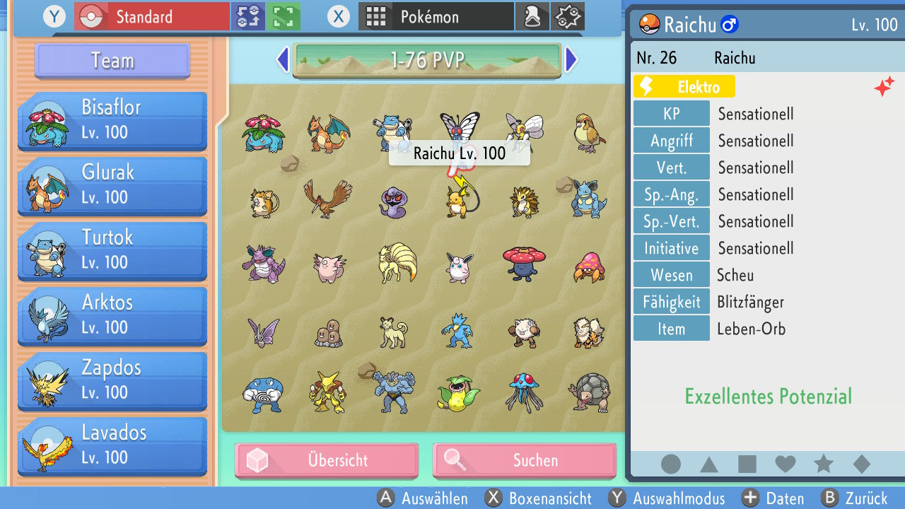 Alle Pokemon sind zusätzlich auf Level 100, was bedeutet, dass sie bereits die maximale Stufe erreicht haben. Du kannst sie sofort in deinem digitalen Team einsetzen, ohne Leveln oder Trainieren zu müssen.