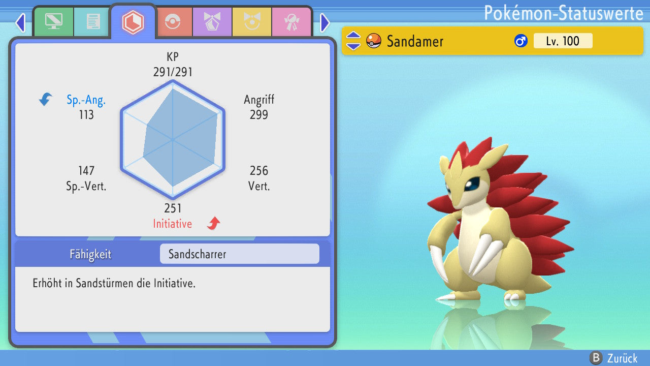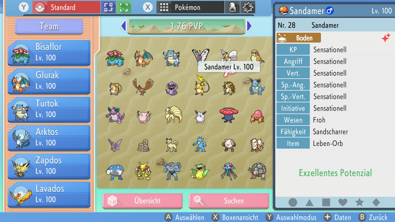 Das Pokemon ist mit beeindruckenden 6×31 IV-Werten ausgestattet. Das bedeutet, dass es auf allen sechs Werten (KP, Ang., Sp-Ang., Vert., Sp-Vert., Init.) die maximalen 31 IV/DV-Punkte besitzt. Dein Pokemon startet somit mit herausragender Stärke in digitale Kämpfe.