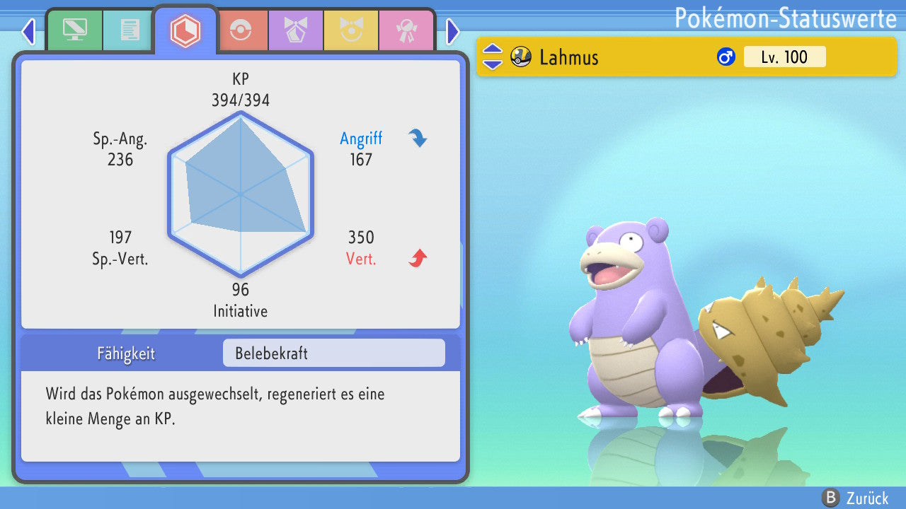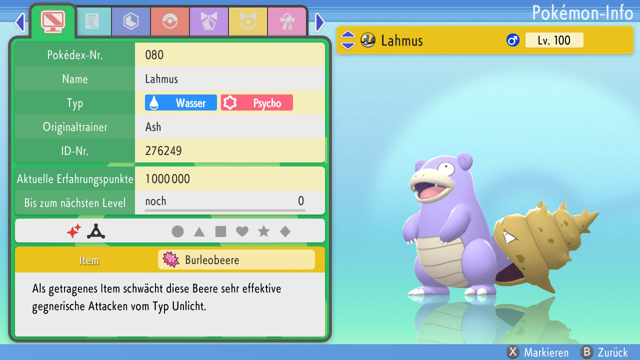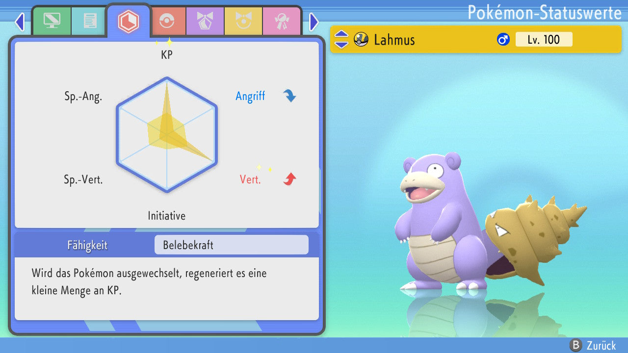 Das Pokemon ist mit beeindruckenden 6×31 IV-Werten ausgestattet. Das bedeutet, dass es auf allen sechs Werten (KP, Ang., Sp-Ang., Vert., Sp-Vert., Init.) die maximalen 31 IV/DV-Punkte besitzt. Dein Pokemon startet somit mit herausragender Stärke in digitale Kämpfe.