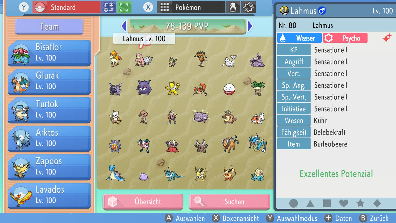 - Moveset/Attacken: Für den Spielerkampf optimiert.