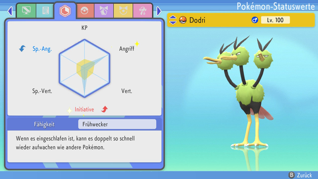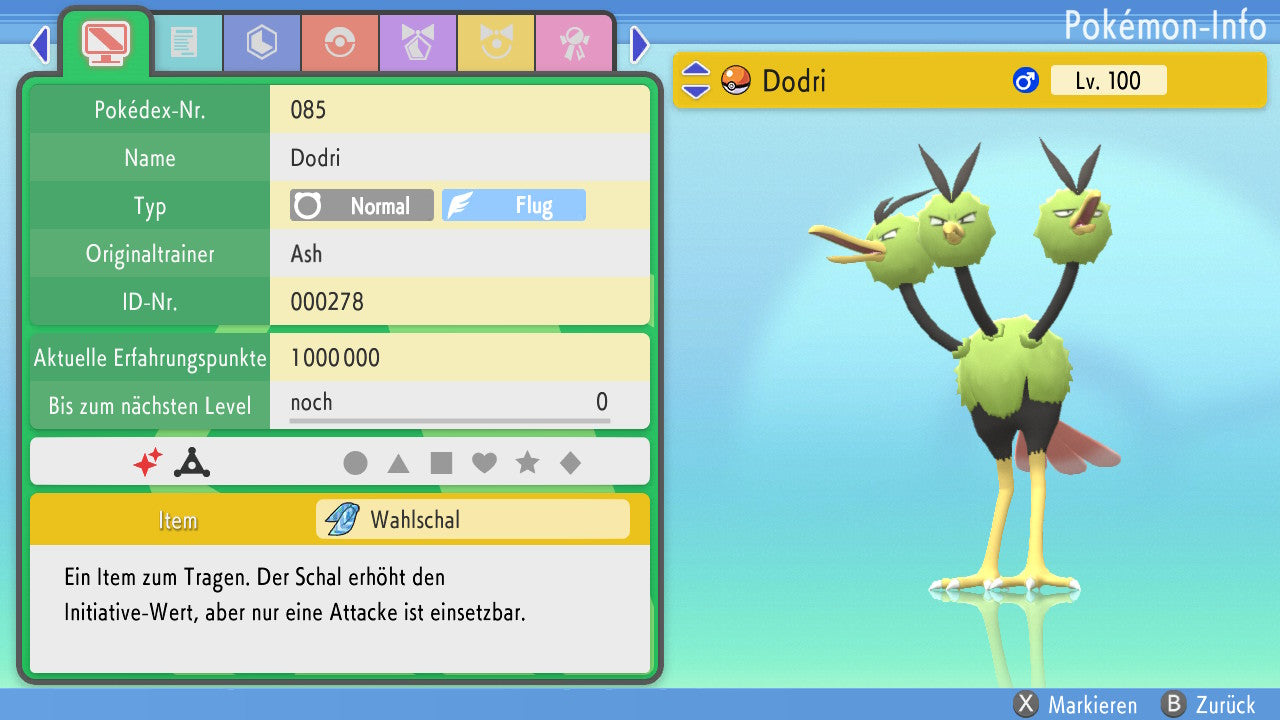 Das Pokemon ist mit beeindruckenden 6×31 IV-Werten ausgestattet. Das bedeutet, dass es auf allen sechs Werten (KP, Ang., Sp-Ang., Vert., Sp-Vert., Init.) die maximalen 31 IV/DV-Punkte besitzt. Dein Pokemon startet somit mit herausragender Stärke in digitale Kämpfe.