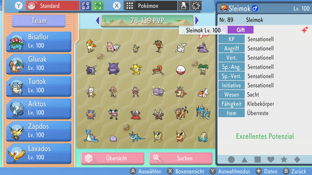 - Moveset/Attacken: Für den Spielerkampf optimiert.