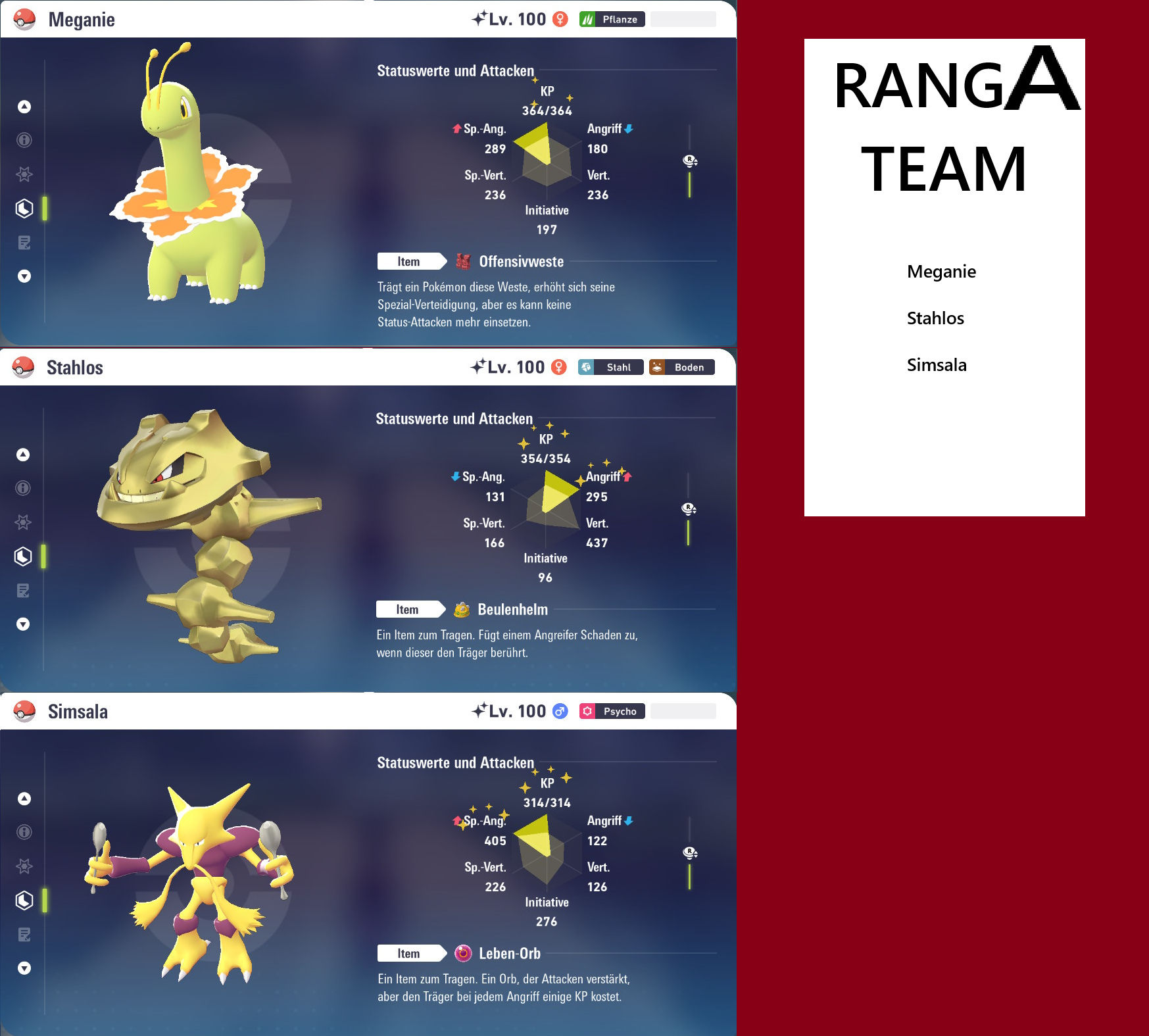 Teamgröße: 3 Pokémon (voll kampfbereit)