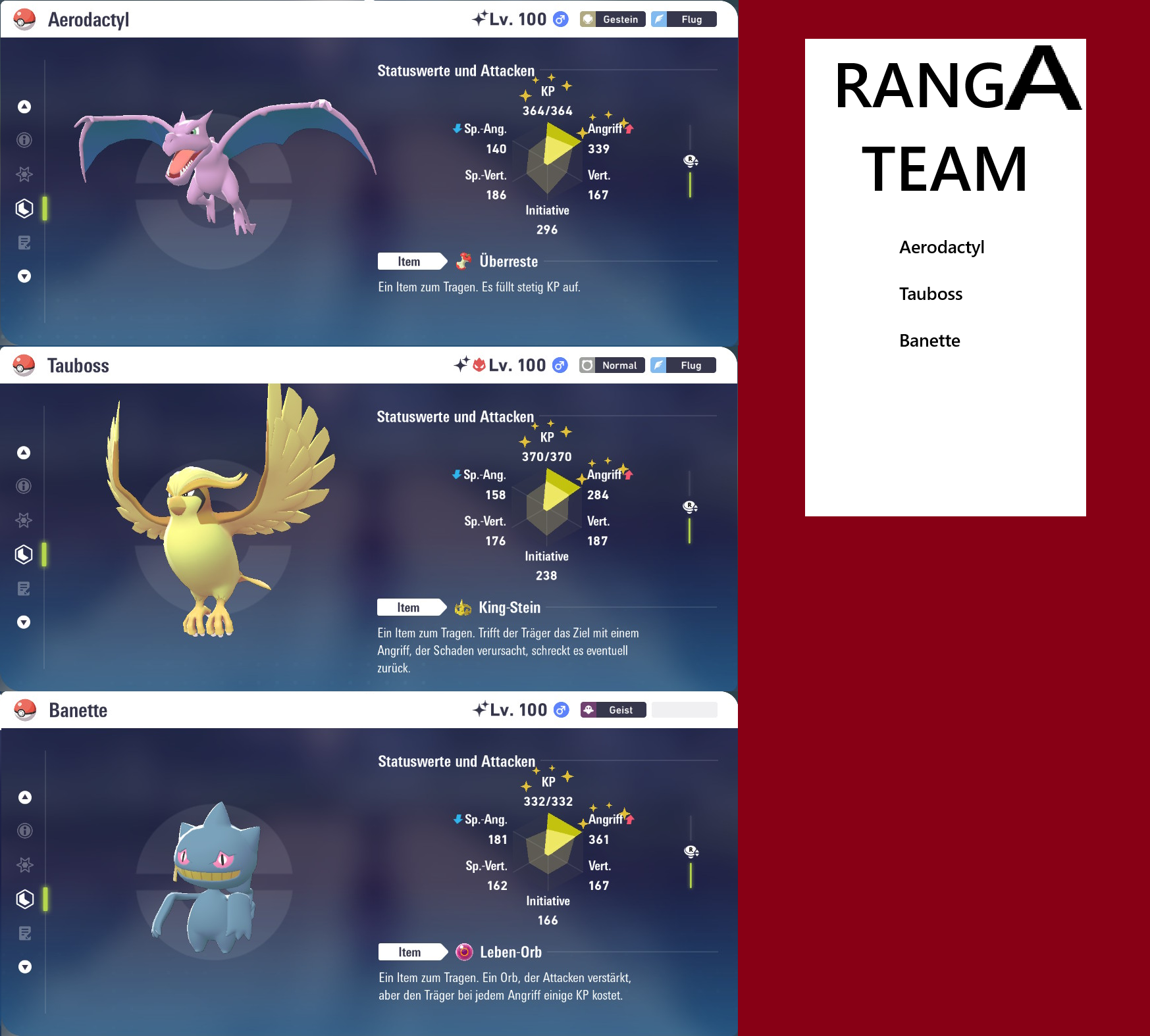 Ranked Team Nr. 9: #142 Aerodactyl #018 Tauboss #354 Banette PVP ZA